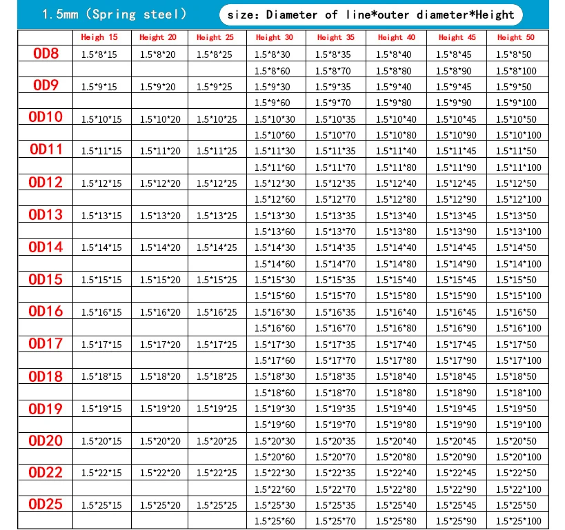 Диаметр проволоки: 1,5 мм (размер: диаметр проволоки * Внешний диаметр * высота, единицы измерения: мм)