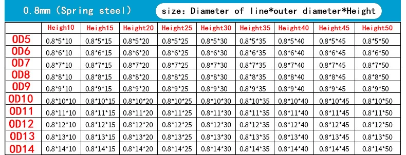 Размер изделия:Диаметр проволоки (0,6/0,7 мм) * Внешний диаметр (3-12 мм) * высота (5-50 мм)