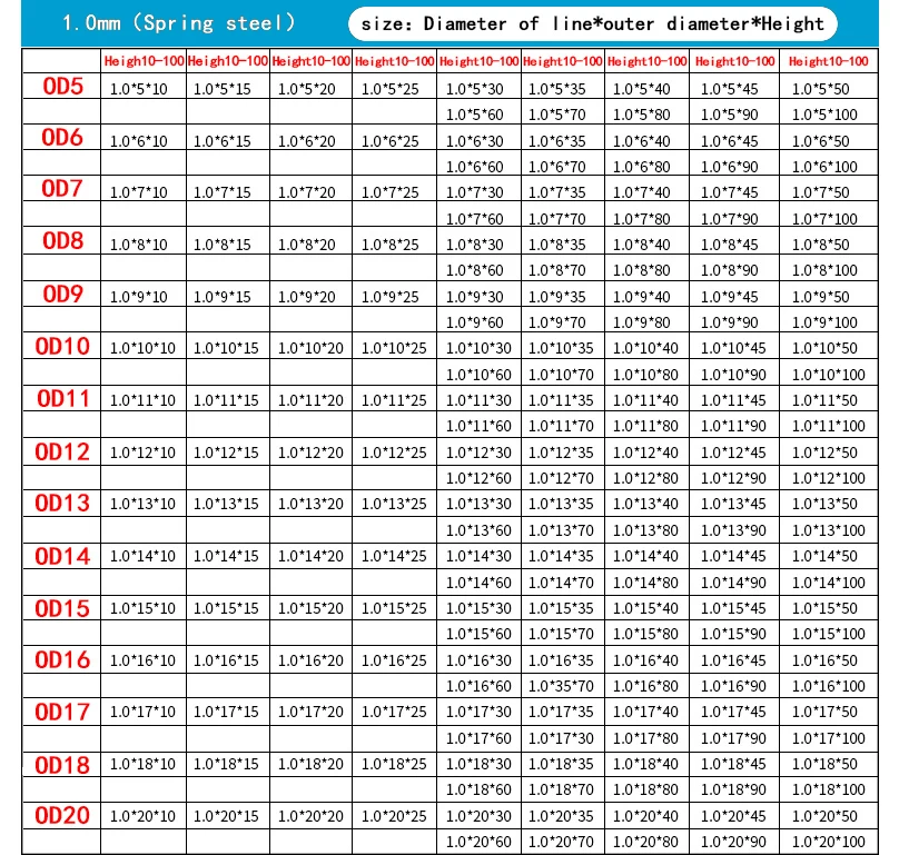 Диаметр проволоки: 1,0 мм (размер: диаметр проволоки * Внешний диаметр * высота, единицы измерения: мм)