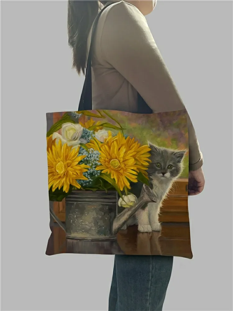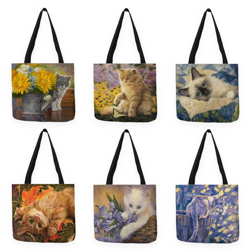 B13034 Милая живопись маслом Кот с принтом дизайнерская сумка для женщин женские сумки на плечо Большая вместительная сумка для покупок многоразовые сумки