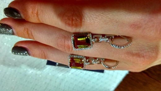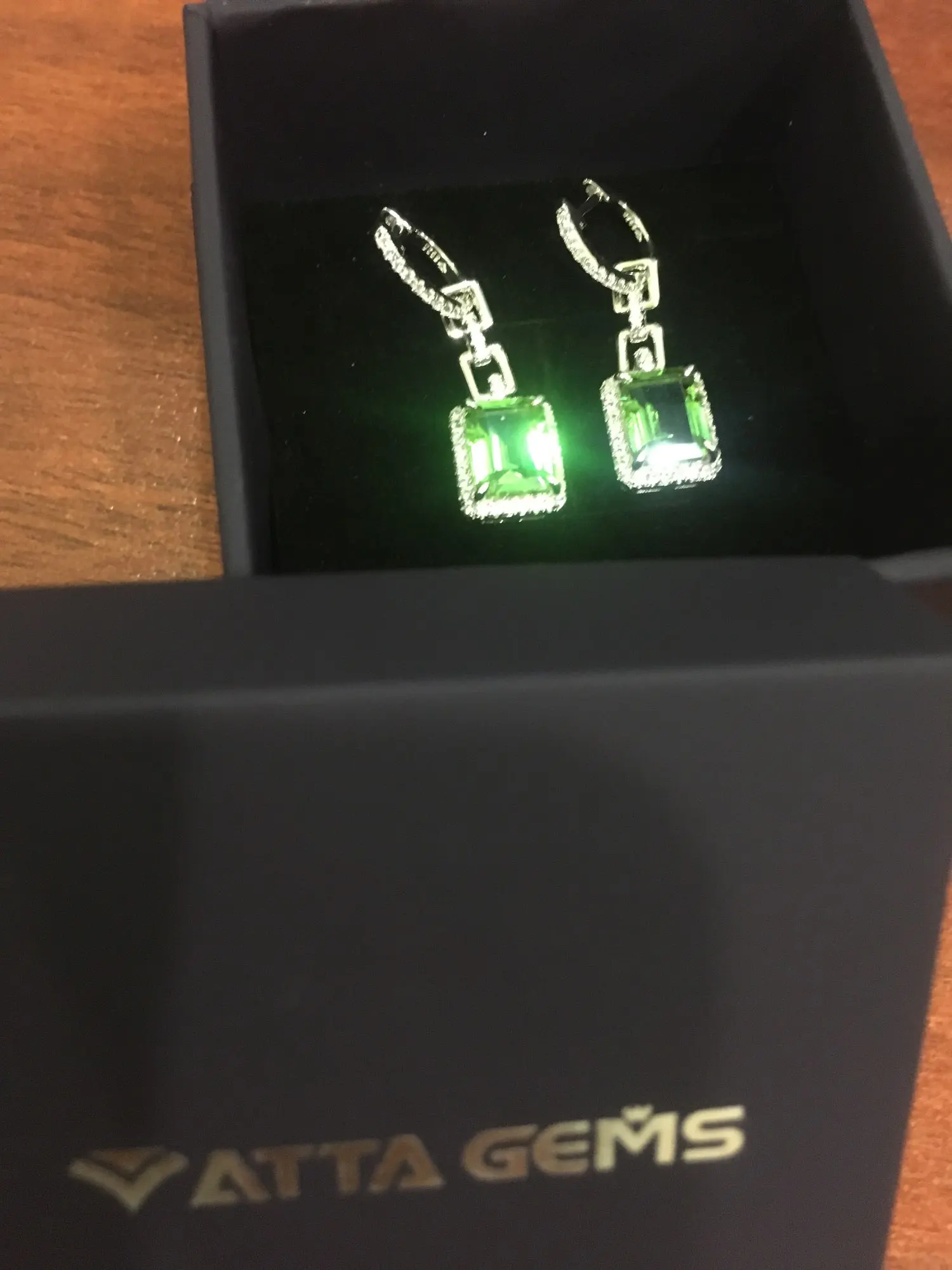 Камень действительно меняет цвет на зелёный в лучах ламп дневного света. Упаковано шикарно, куча коробочек, тряпочка для чистки, подарок - гвоздики с жемчугом. Сами серьги сделаны изящно, хорошая застёжка. Трек отслеживался. Спасибо.