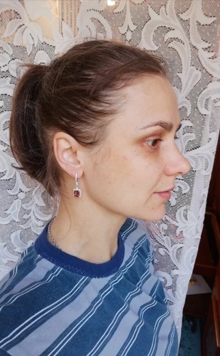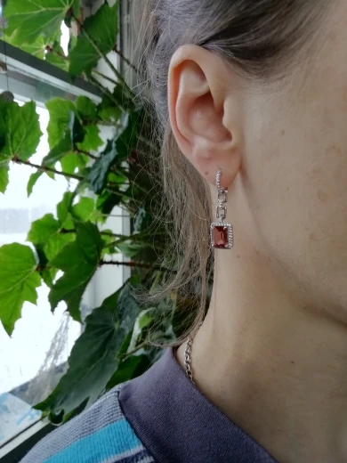 Просто очаровательные сережки. Прилетели в Киев в Украину за 2 недели. Упаковано все очень тщательно. Продавец прожил подарочек -милые серебряные гвоздики с красивым малиново-красным камушком и салфетку для серебра.Сережки цвет меняют,просто восторг.На швензах и вокруг сутанита маленькие цирконы-сверкают.Можно снять подвесочку и носить серьги без нее.На тонкую мочку уха.Мне нравится