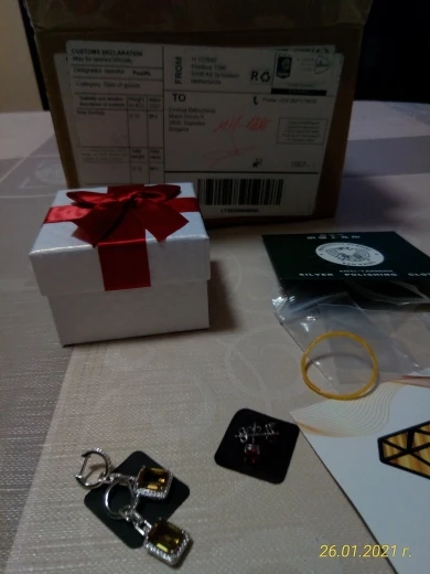 Серьги великолепные, всё абсолютно как на фото. Качество изделия прекрасное, упаковка надёжная, от оплаты заказа до получения его в Москве прошло ровно 6 недель. Кроме того, продавец приложил в качестве подарка салфетку для чистки ювелирных изделий, очень красивую фирменную коробочку, бархатный мешочек и две пары сережек-гвоздиков - с рубином и жемчугом. Большое спасибо!