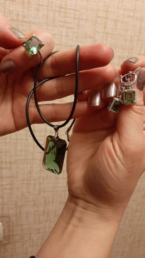 Соответствует описанию. Цвет камня меняется в зависимости от источника освещения. При люминесцентном освещении цвет камня становится зеленым, при солнечном свете цвет как на картинке продавца. Всем довольна. Рекомендую.