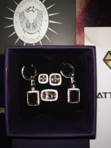 Заказывала к серьгам кольцо и кулон так, чтобы получился набор. Серьги изумительные, берите, не пожалеете. Продавец положил подарок, серьги-гвоздики, я очень довольна. Продавцу большое спасибо. Пришёл заказ очень быстро.