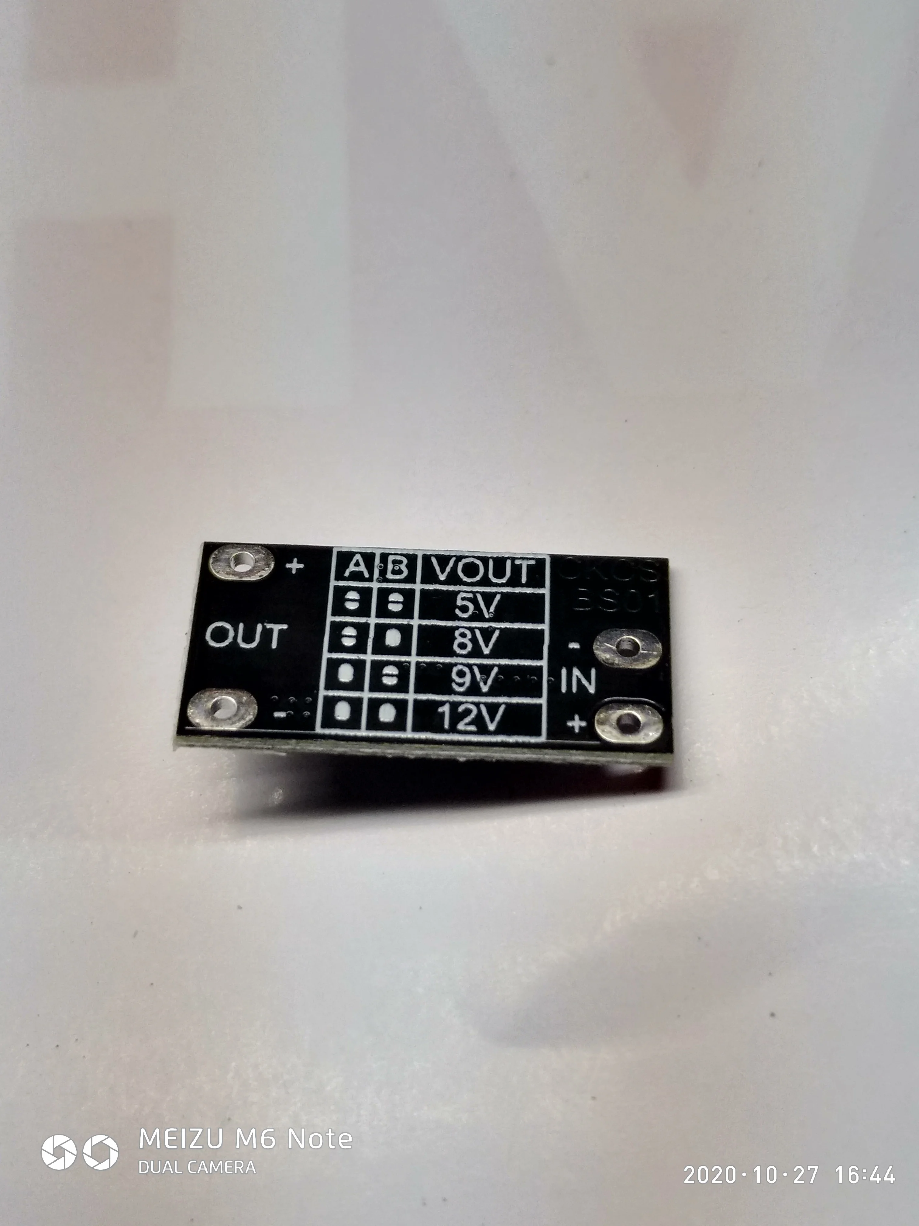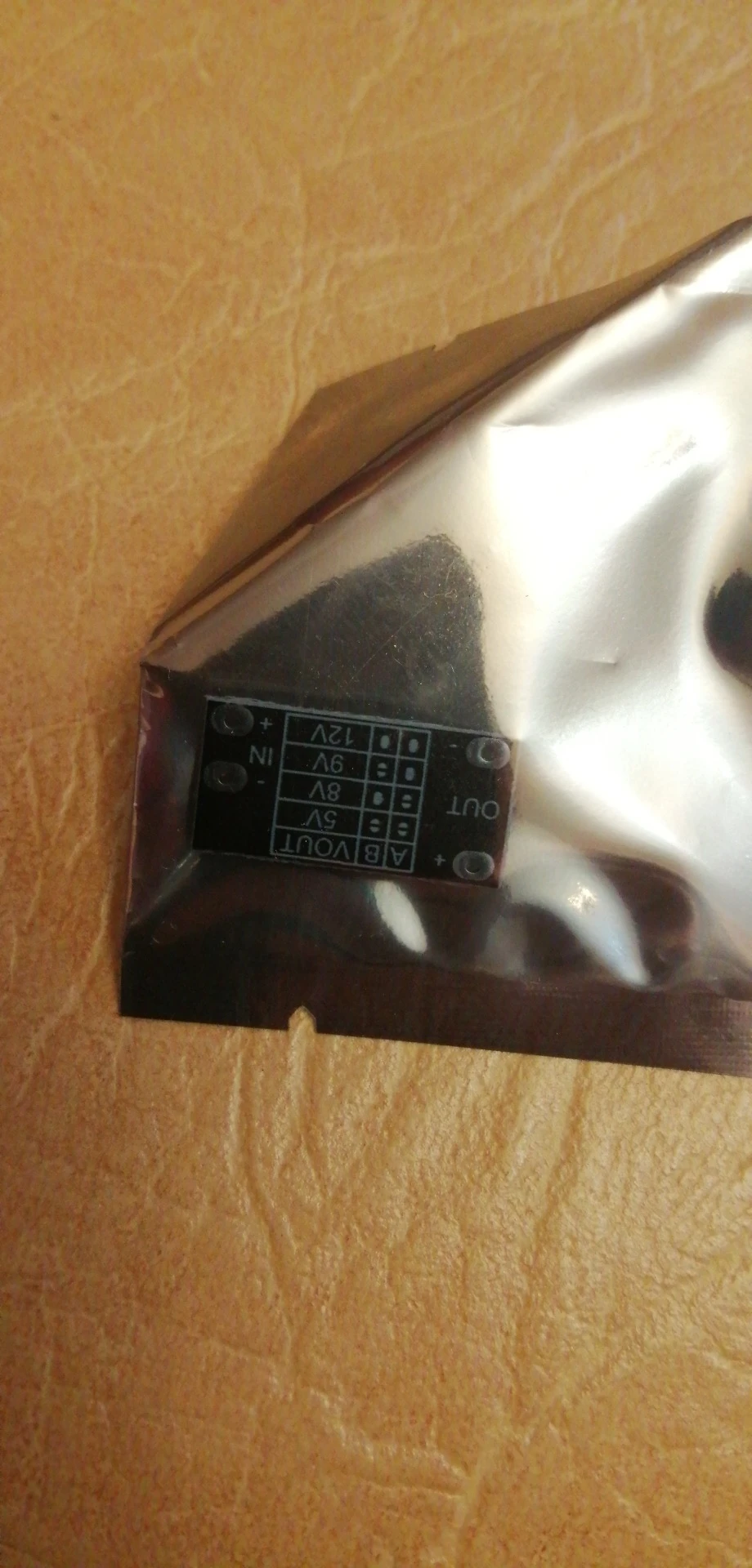 Дошло за 3 недели, Новая Почта. Упаковали все мелочи в картонную коробку. Не обратил внимание при заказе, что она совсем крошечная. Приходит распаянная под 12 в, на выходе 12,03, при входе 4,97. Перемычки под разные напряжения нарисованы на плате. светодиод на выходе ИМНО ярковат, но можно выпаять или как всегда изолента поможет :)