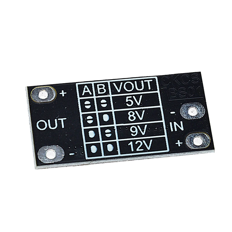 Интересная плата. По умолчанию перемычки стоят на 12 вольт. 5 и 8 вольт тоже нормально, а вместо 9 вольт -8,38.