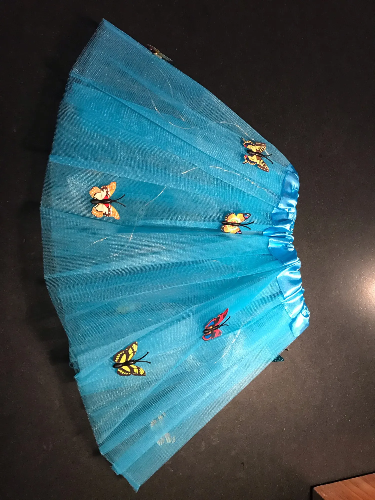 симпатичная юбка, огоньки светят как положено. бабочки на булавках