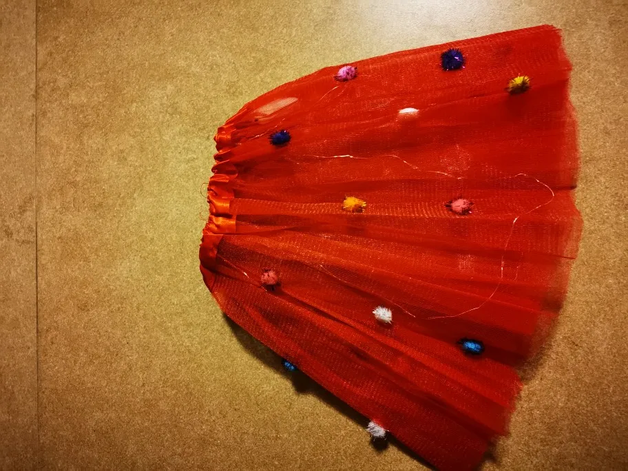 шикарная юбочка! два слоя фатина. между ними led гирлянда. очень аккуратный блок питания. батарейка в комплекте. спасибо продавцу