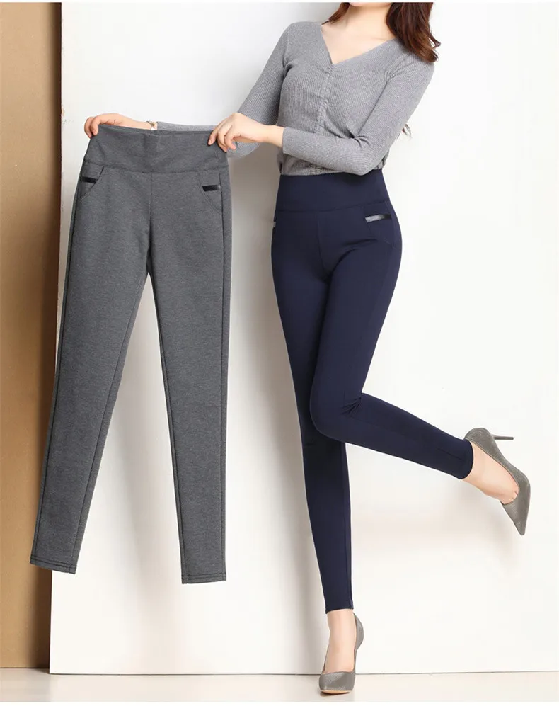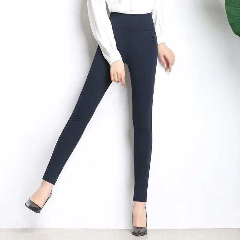 Леггинсы с высокой талией размера плюс 5xl женские весенние тонкие Стрейчевые узкие брюки с карманами однотонные черные женские брюки