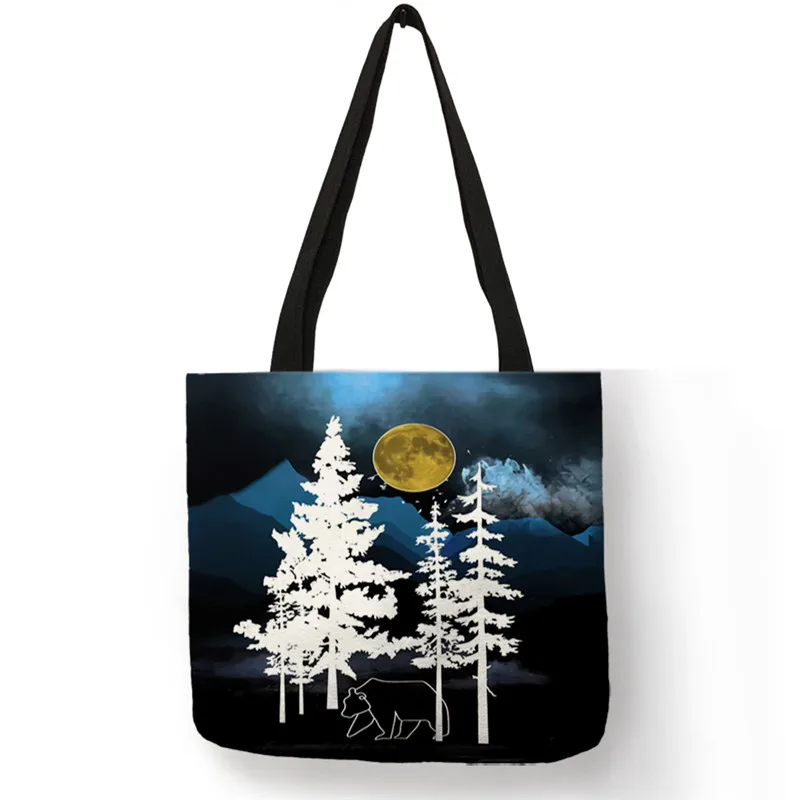 B13014 красивая женская сумка с принтом в виде пейзажа сумка через плечо эко многоразовая переносная сумка для покупок