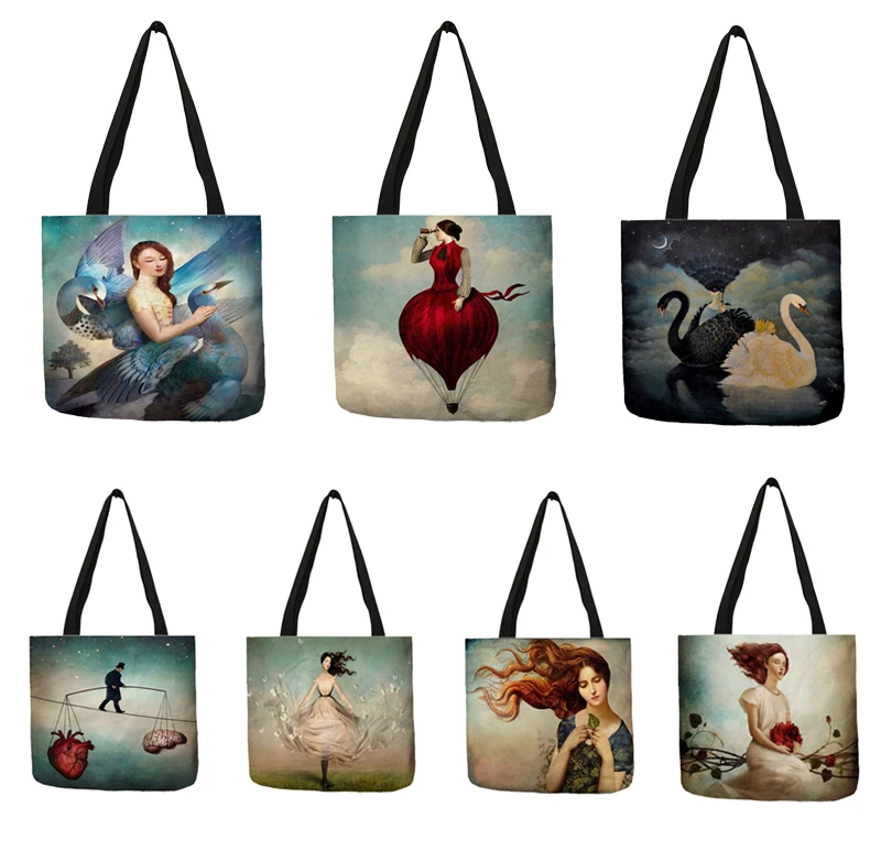 B13015 художественная сумка с масляной росписью, женская сумка, сумка для покупок с принтом, сумка для школьников, сумки на плечо