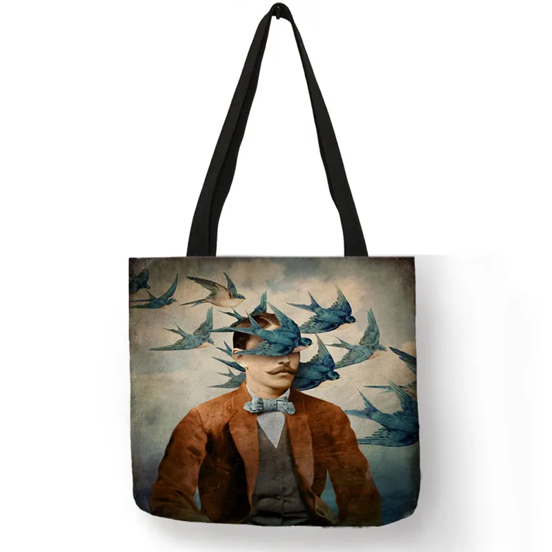 Симпатичная Льняная сумка-тоут с принтом маленькой птицы, женские т...