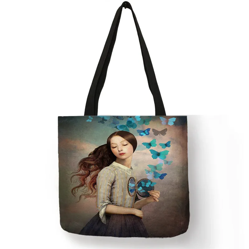 Льняные многоразовые сумки для покупок с принтом для девочек желани...