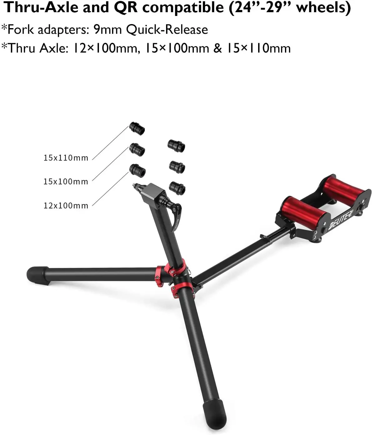* 5-уровневое сопротивление, регулируемое с помощью отдельных 4 шт магнитов, максимально приближает вас к естественным ощущениям езды на велосипеде, обеспечивает реалистичное сопротивление и бесшумную работу, идеально подходит для тренировок в помещении или разогрева или остывания на гонке.* Корпус полностью из алюминиевого сплава для рамы, подставки и роликов, широкая треугольная подставка и резиновые ножки обеспечивают прочную, жесткую и стабильную платформу, быструю и легкую установку за считанные минуты.* Небольшие U-образные барабаны сохраняют равновесие и не позволяют вам ехать с боку, твердый металлический материал обеспечивает плавное, эффективное и продолжительное использование.* Адаптируемая вилка-крепление и гибкие Санки, полностью регулируемая конструкция будет адаптироваться или большинство велосипедов. (колеса 24-29 дюймов; Сквозная ось и QR Совместимость). Вилочные адаптеры: 9 мм быстросъемные, через ось: 12 × 100 мм, 15 × 100 мм и 15 × 110 мм* Этот исключительно портативный тренажер можно сложить, хранить и носить с помощью прилагаемой сверхпрочной сумки-тоут, легко транспортировать и хранить, это может быть лучшая тренировка в любом месте.