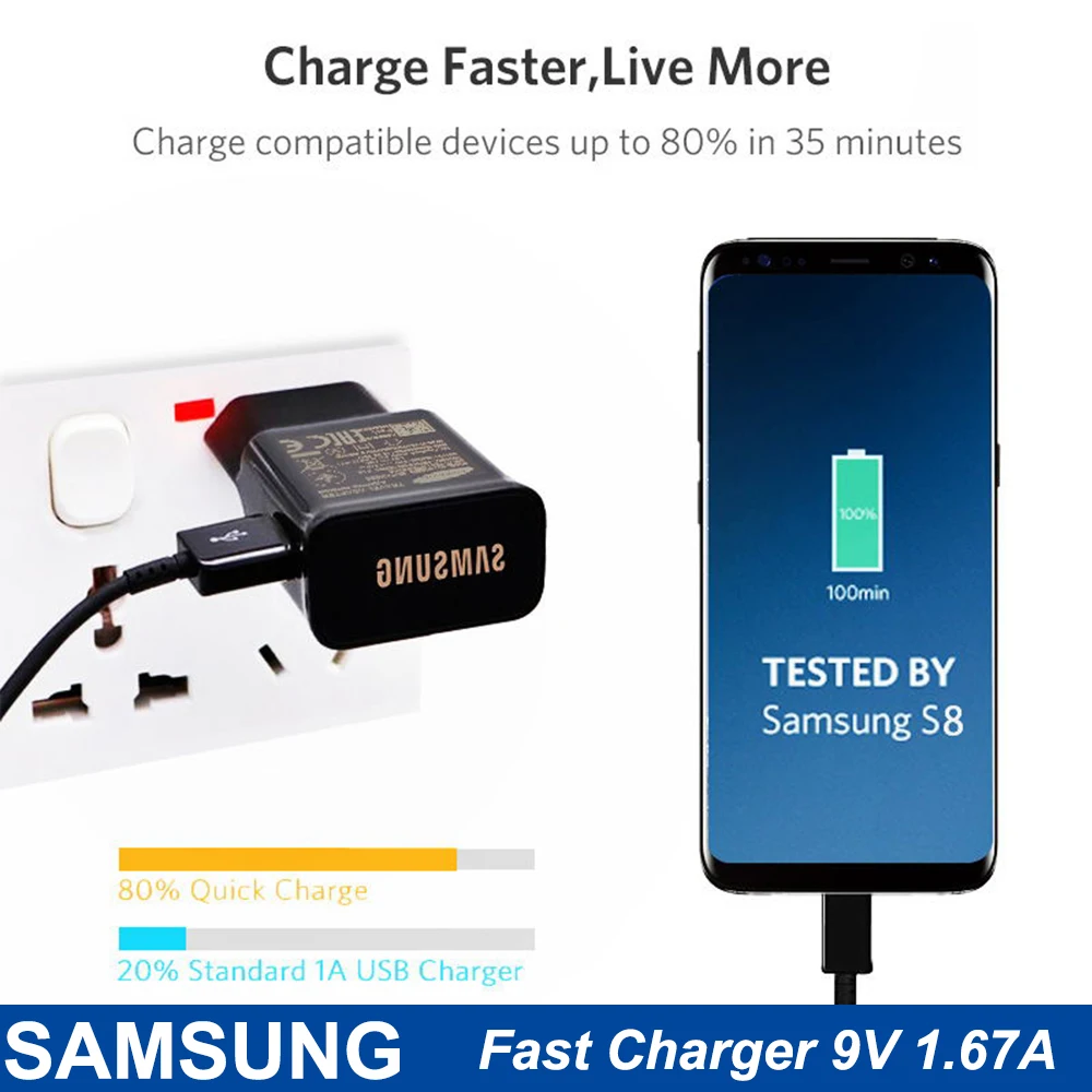 Быстрое зарядное устройство Samsung S10, S8, S9 Plus, адаптер питания европейского стандарта, 9 В, 1,67 А, зарядное устройство с Micro USB-кабелем для Galaxy A30, A40, A50, A70, A60, note 10, 9, 8