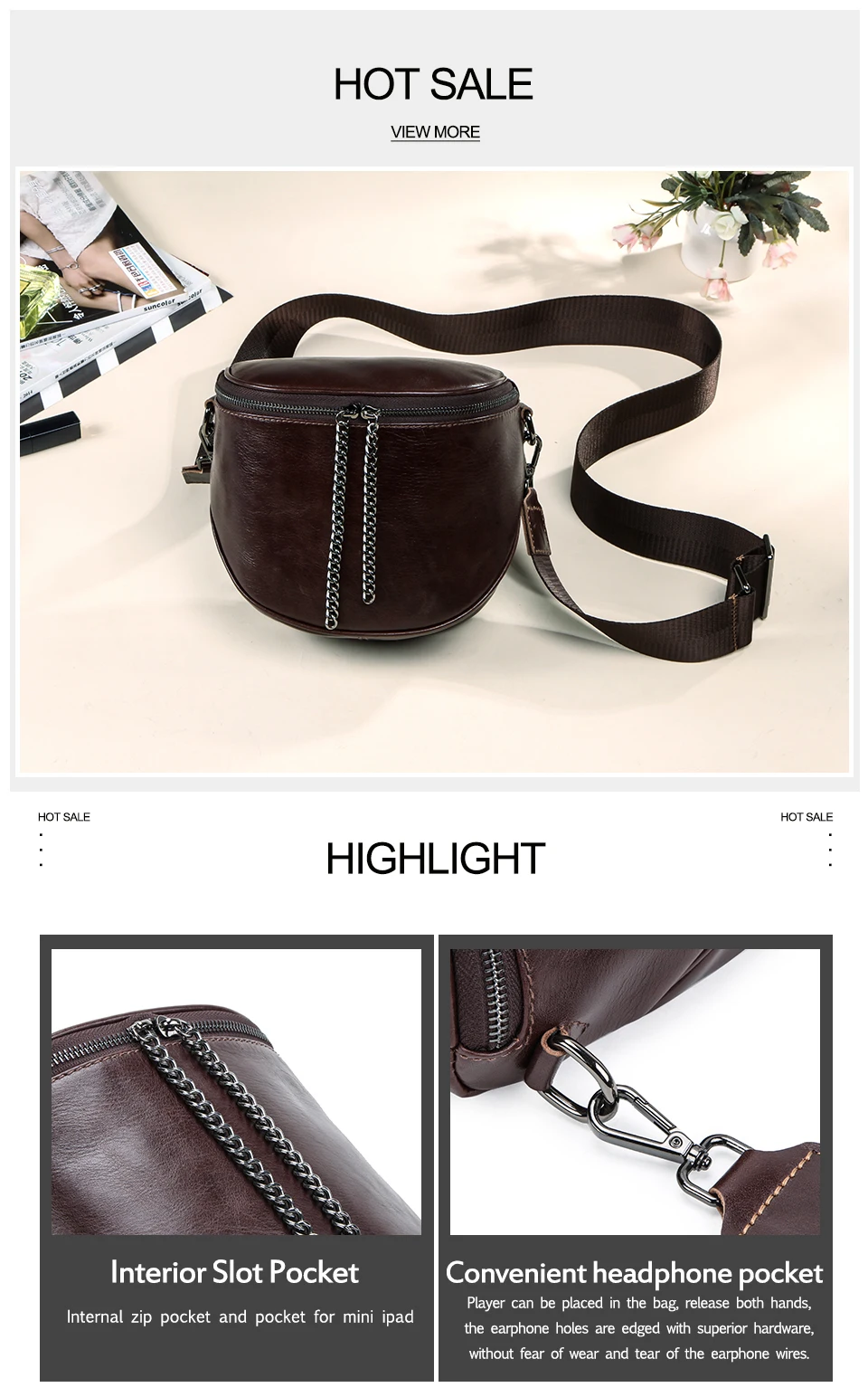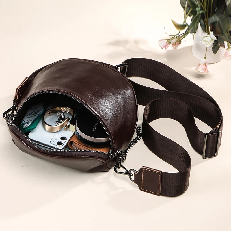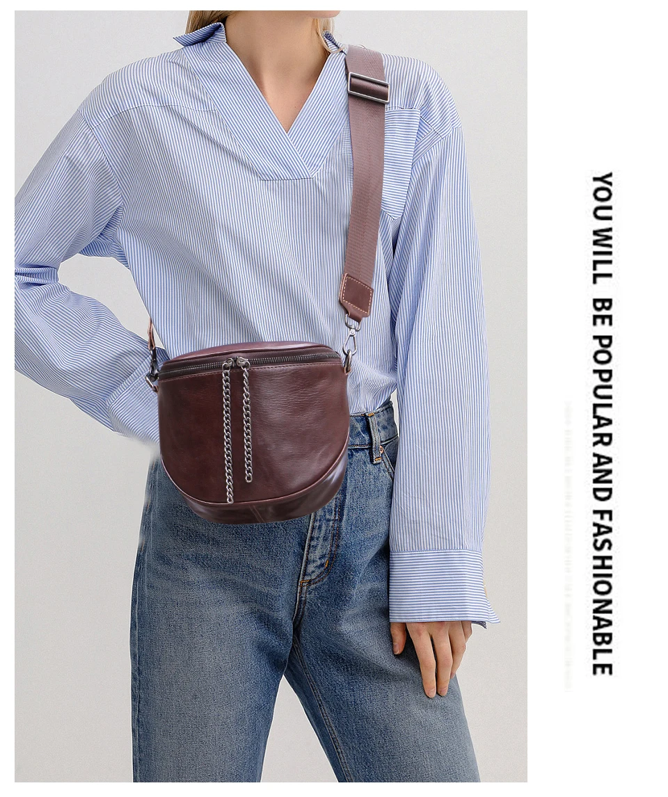 Сумка-мессенджер Женская Полукруглая, модный саквояж на плечо из натуральной кожи, сумочка-мешок тоут через плечо