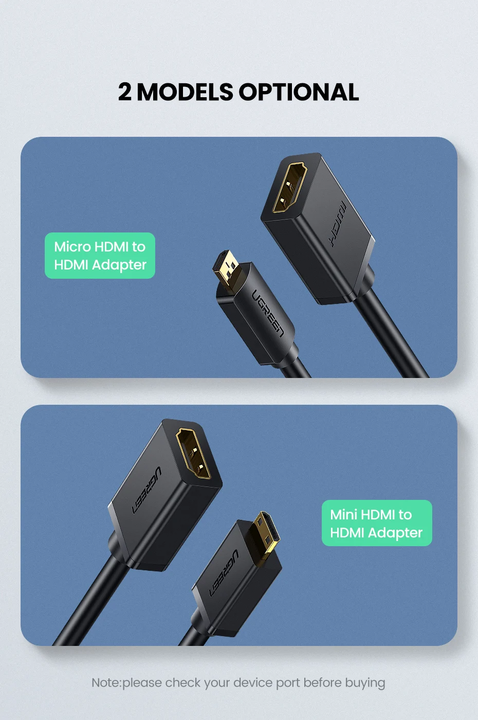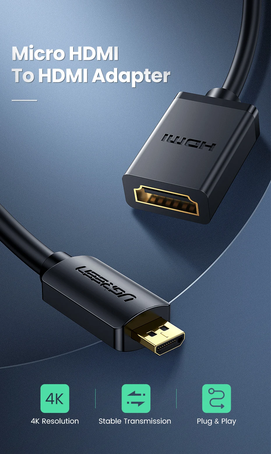 Адаптер UGREEN 4K Micro HDMI, высокоскоростной штекер-гнездо 4K 3D для Raspberry Pi 4 GoPro, 22 см, совместимый с Mini HDMI