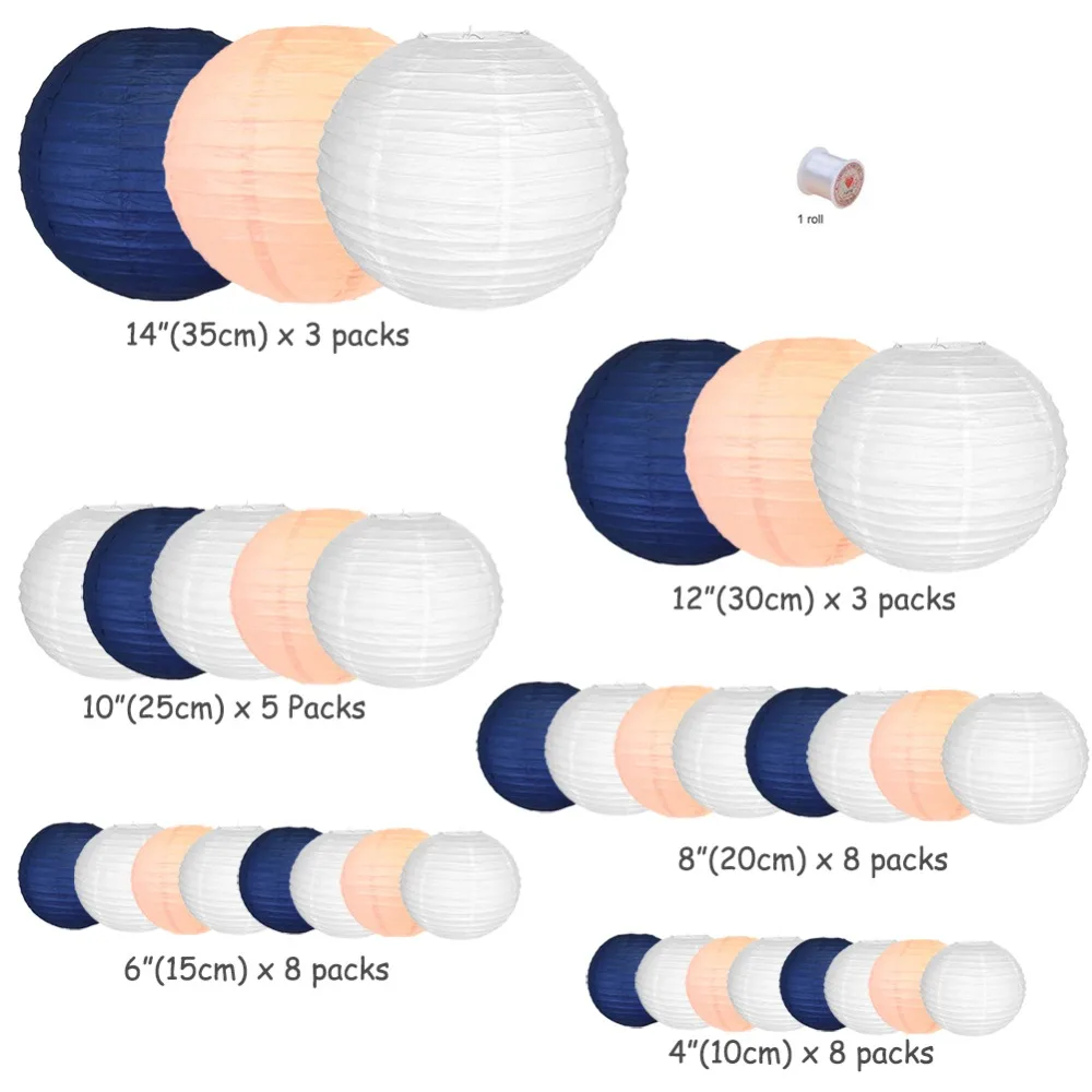 Разные размеры S и цвета-каждая упаковка включает 35 бумажных фонарей разного размера 4 "6" 8 "10" 12 "и 14".ВключаяПерсиковый, темно-синийИ белыйЦвета