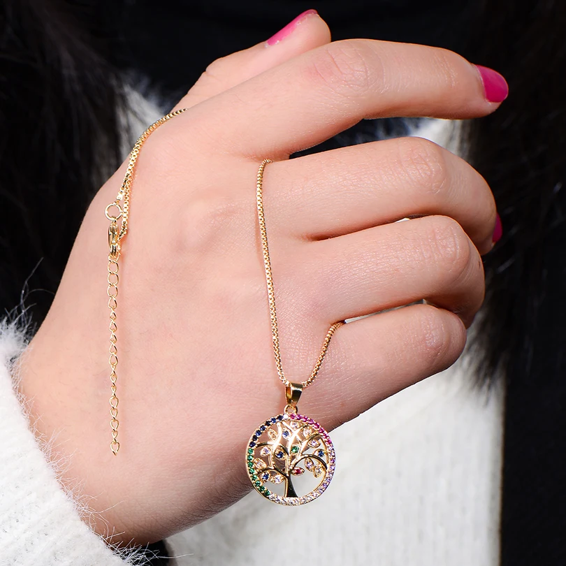 Название: Pipitree красивое колье из фианита в форме Древа Жизни с медным кулоном и кубическим цирконием для женщин и девочек, ювелирные изделия в подарок
