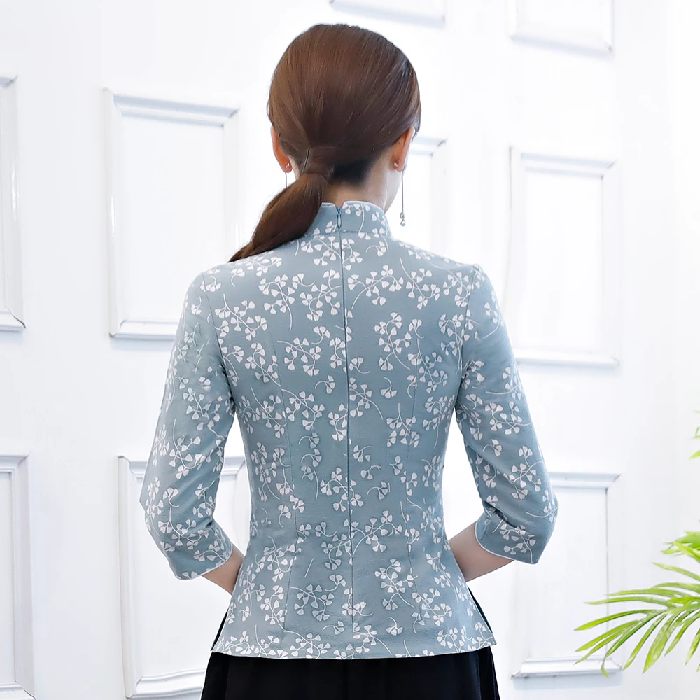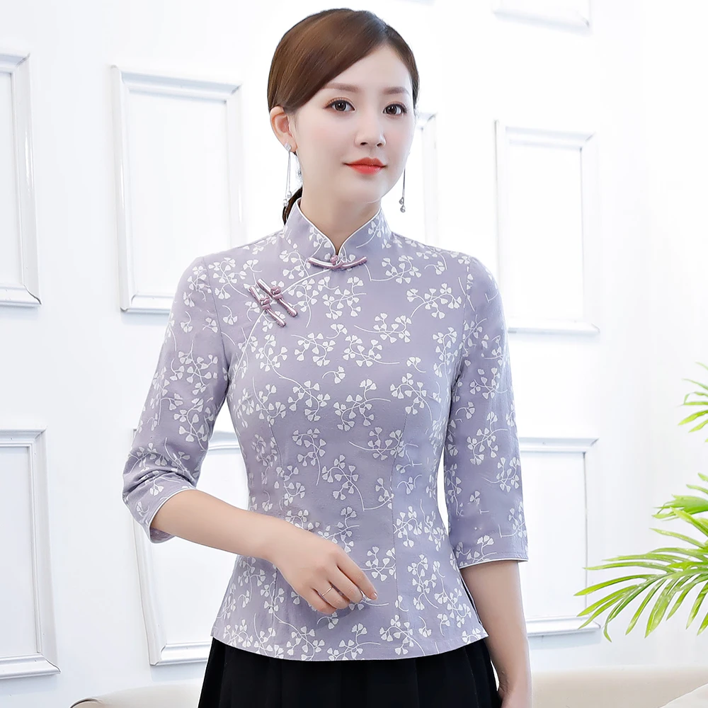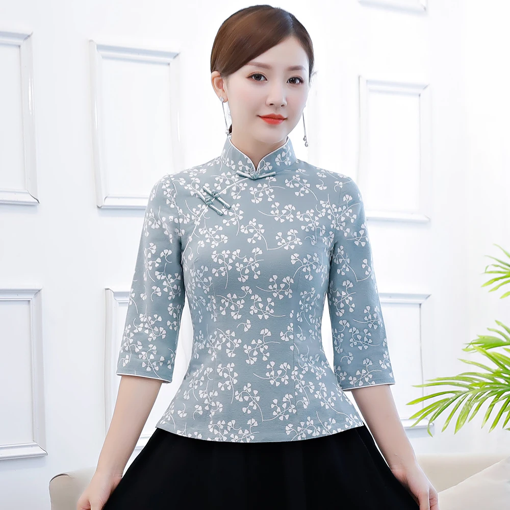 Женская Винтажная Футболка-Ципао с воротником-стойкой, размеры до 3XL