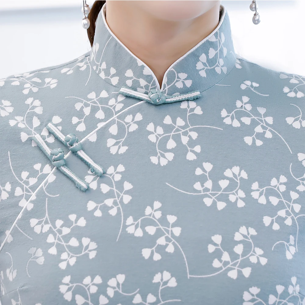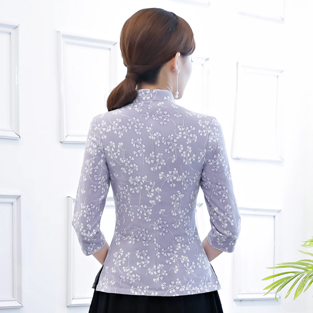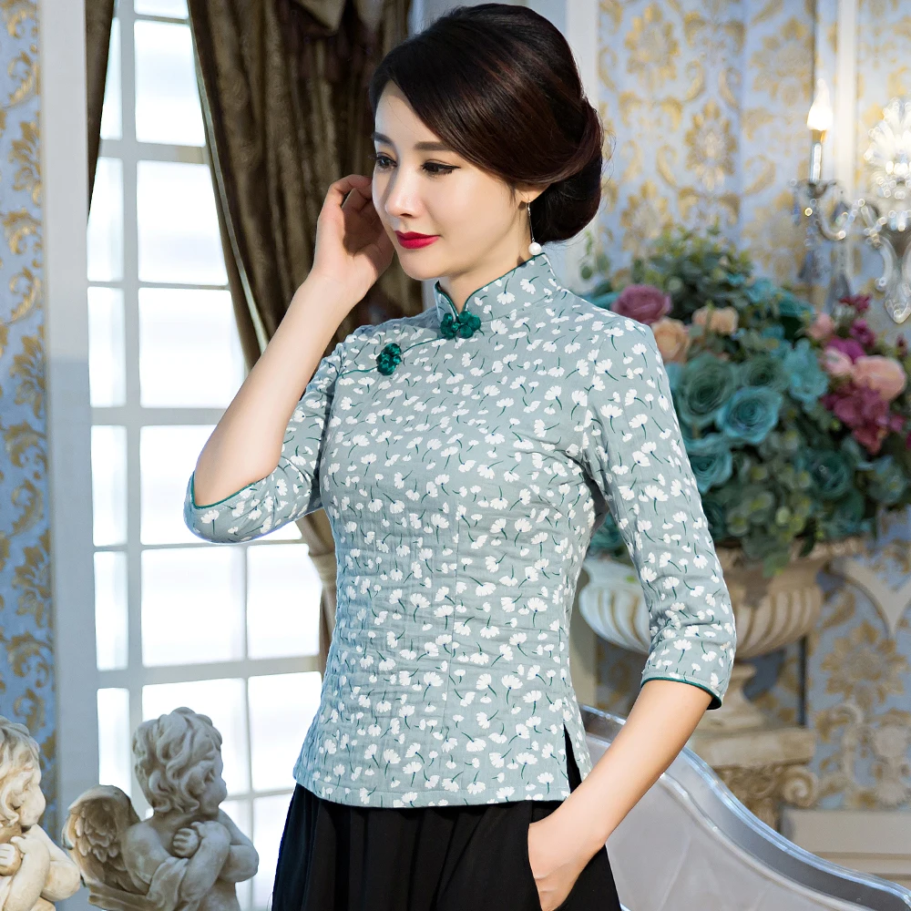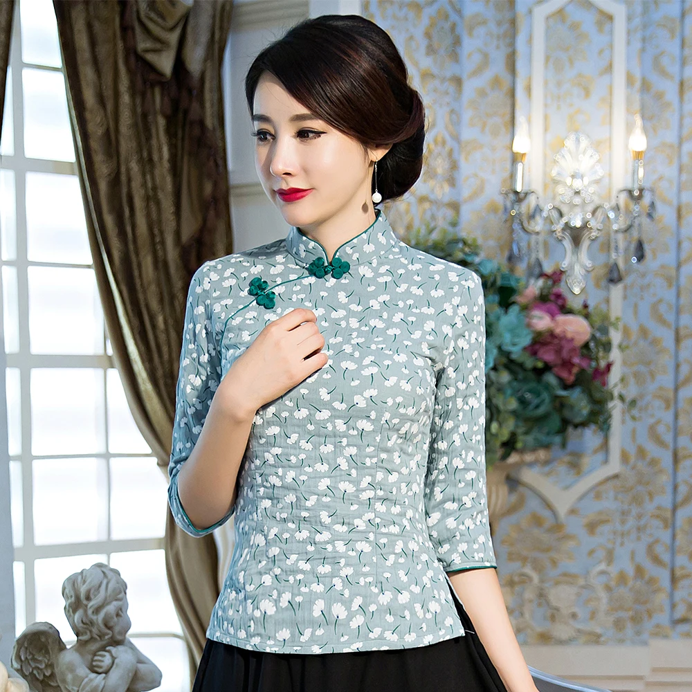 Женская Винтажная Футболка-Ципао с воротником-стойкой, размеры до 3XL