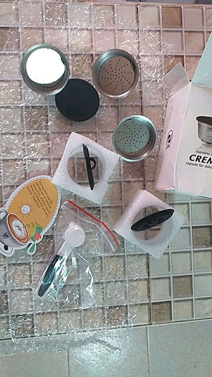 Он прибыл раньше, чем ожидалось. Он поставляется со своими чистящими щетками и щетками, 3 полных комплекта каждой вещи (капсула, коробка и щетка).
