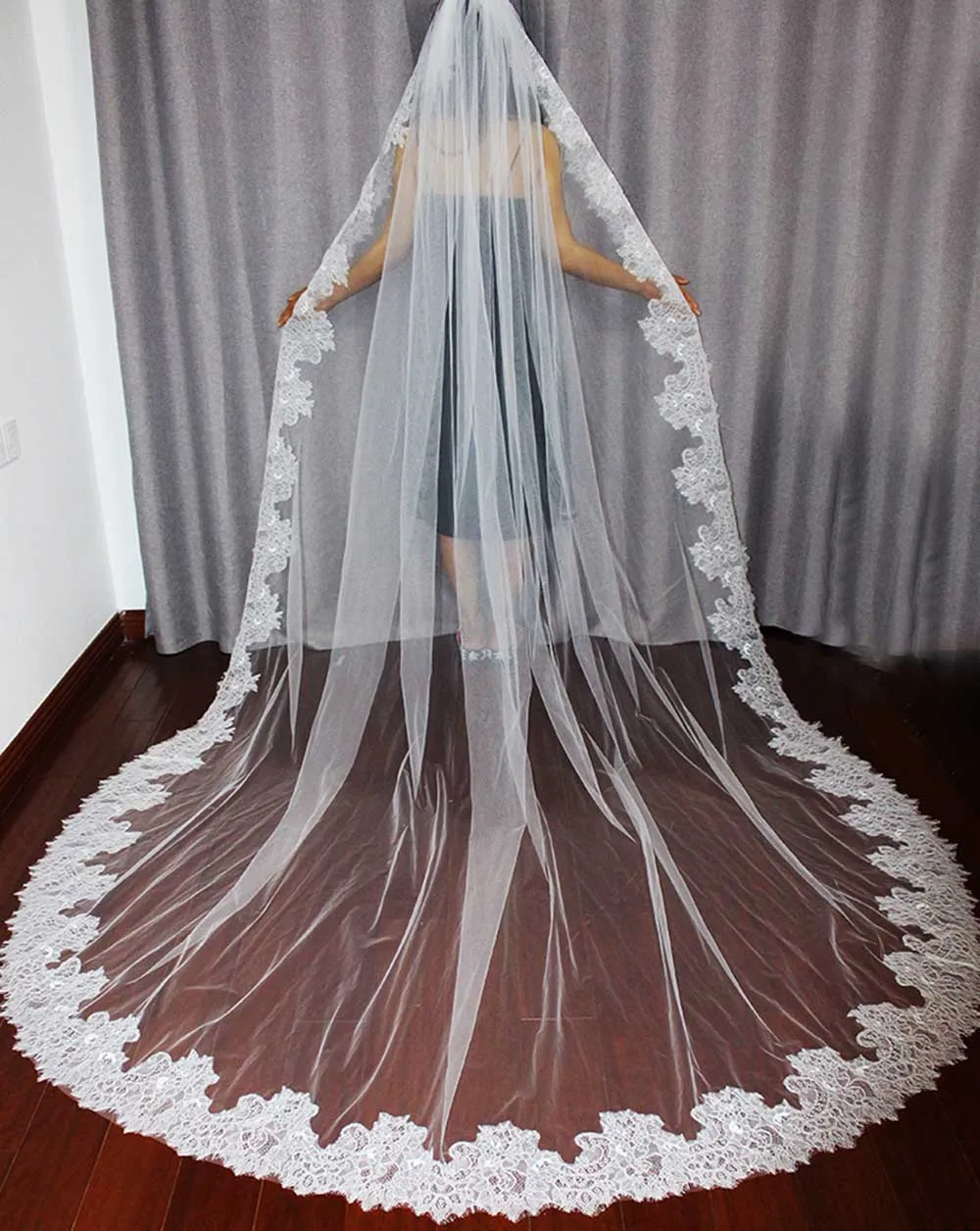 4 метра белыйслоновая кость один слой Красивая Соборная длина круже...