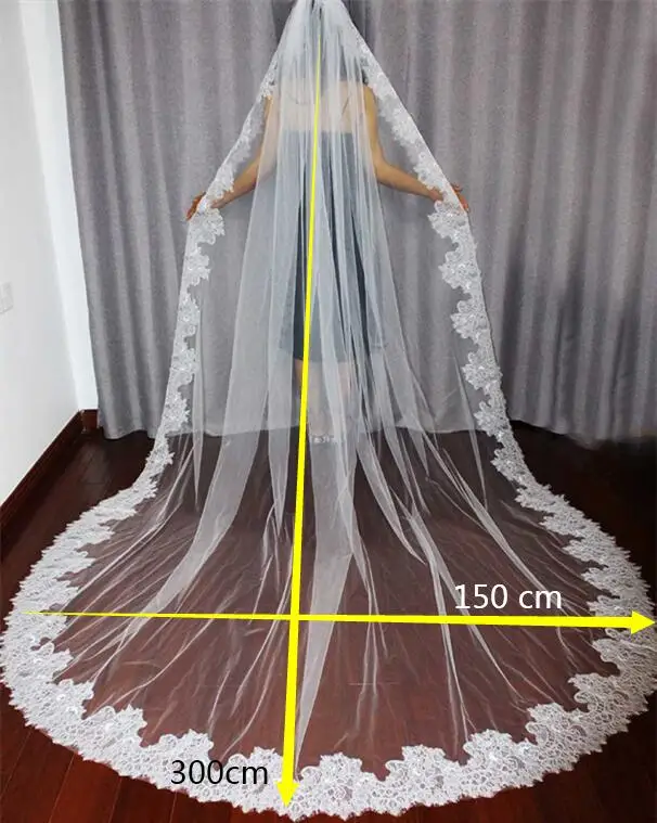 3 м белый Кот собор фаты Длинные Кружево Край Фата с расческой Свад...
