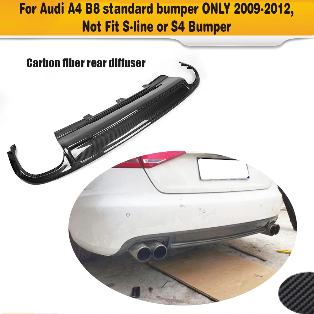 Задний бампер из углеродного волокна для автомобиля, спойлер, диффузор с выхлопом для Audi A4 B8, стандартный седан, только 2009-2012, 4 выхода, черный полиуретан