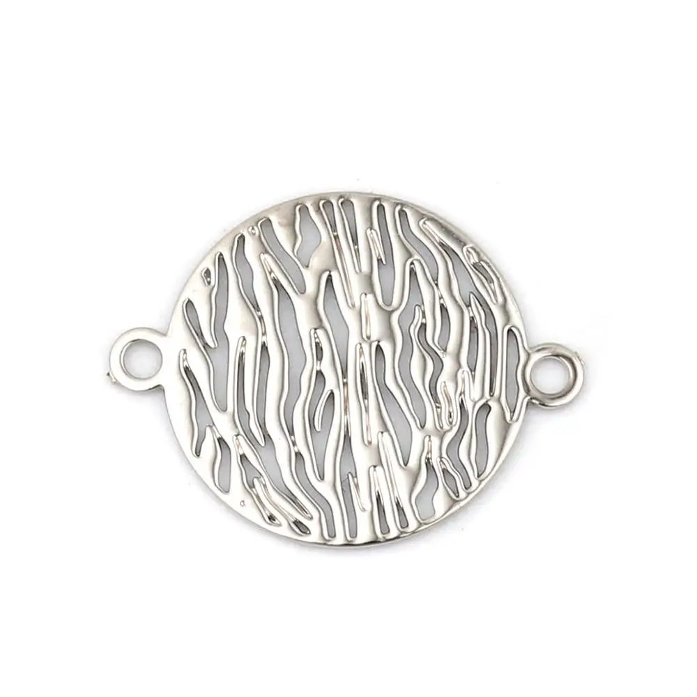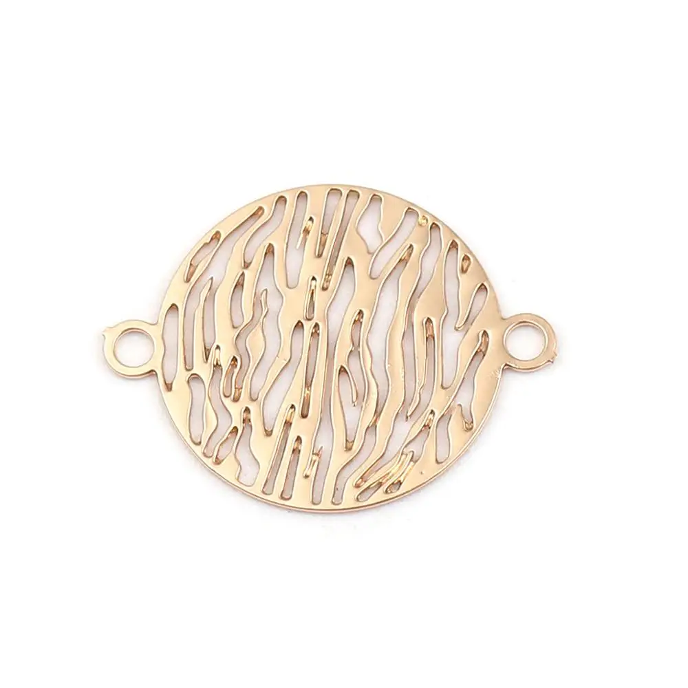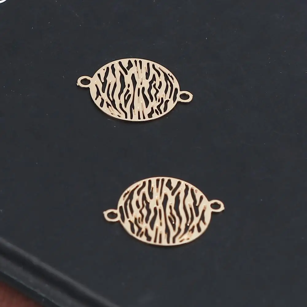 Соединители для стемпинга DoreenBeads, круглые, золотистые, серебристые, полосатые, с узором, сделай сам, 16 мм x 12 мм, 20 шт., медные филигранные