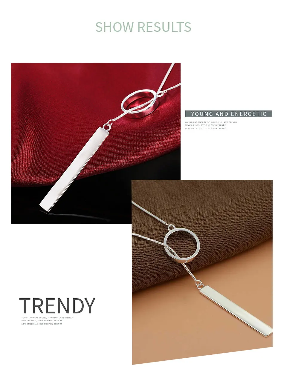 Серебро 925 Длинные круглые подвески ожерелье цепи для женщин подарок на день Святого Валентина Модные ювелирные изделия