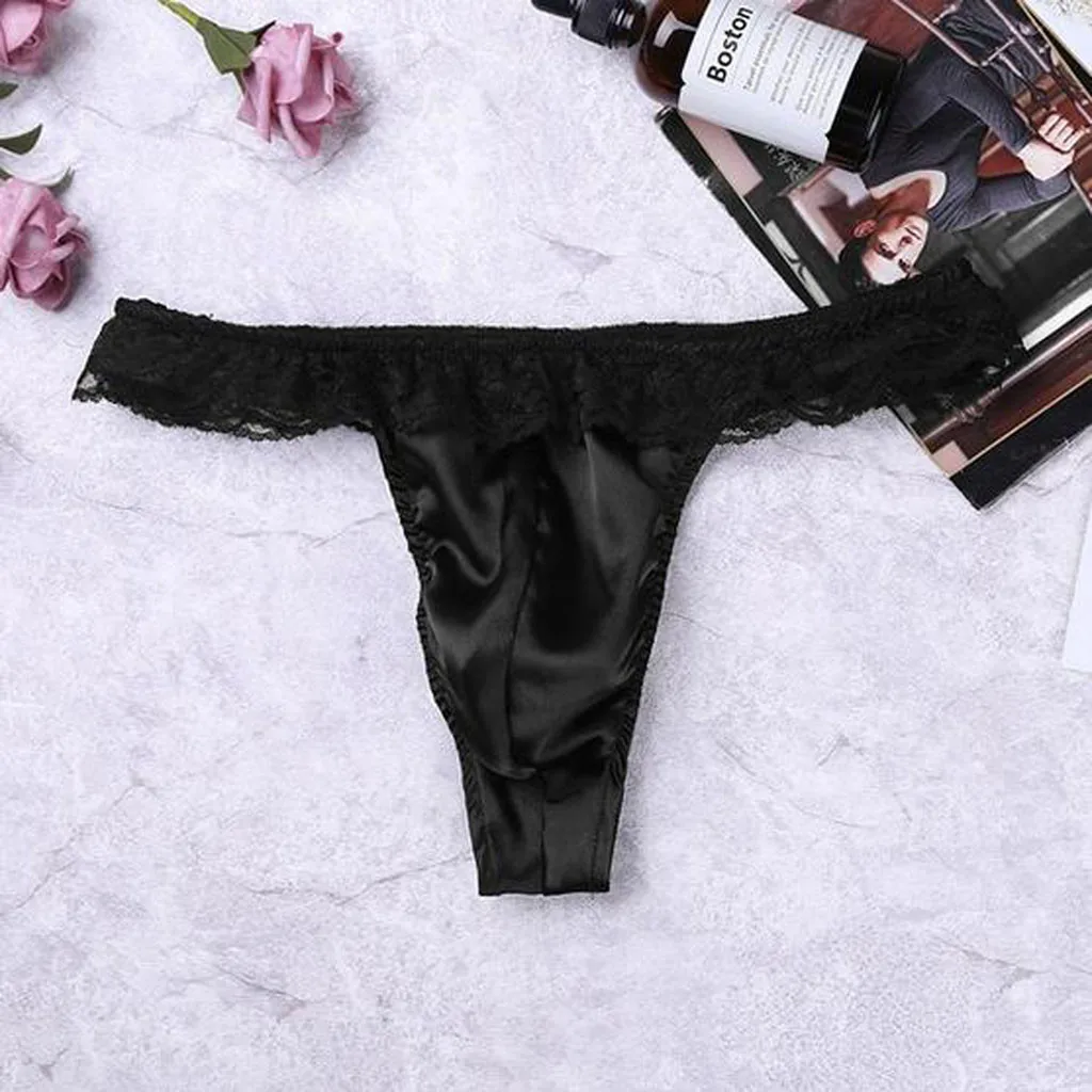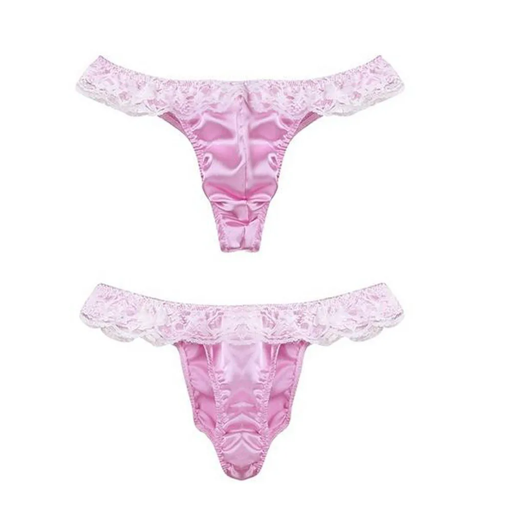 Женские атласные трусики с оборками и рюшами, трусы для геев, нижнее белье, мужские стринги с бантом и g-стринги, трусы для мужчин