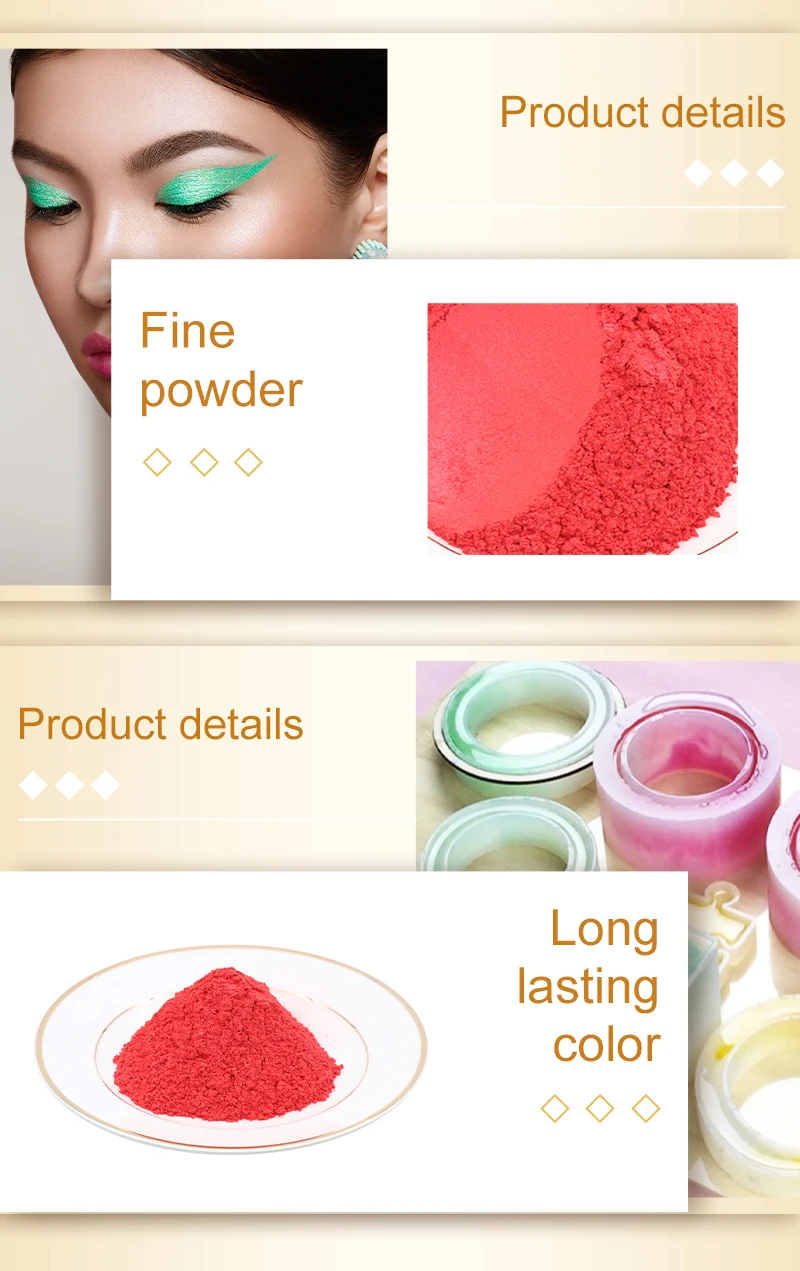 Применение: краска и покрытие, чернила, пластик, кожа, печать, бумага, строительные материалы, украшения, металл, деревянная мебель, керамика, роспись стен, ручная роспись DIY, граффити, жемчужная краска, велосипедная краска, железная краска, ремонт жемчужной кожи, краска для игрушек, Модифицированная Автомобильная живопись, ремесла, косметика, Тени для век, блеск для губ, лак для ногтей.
