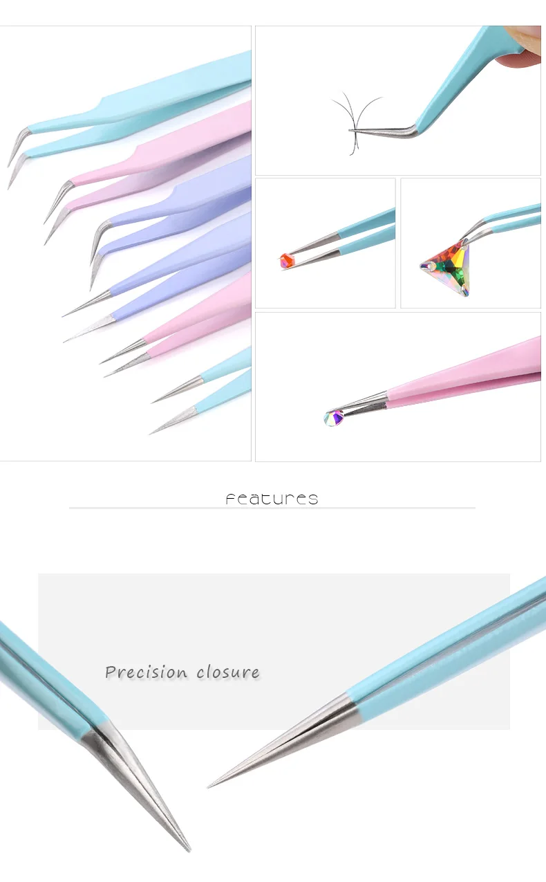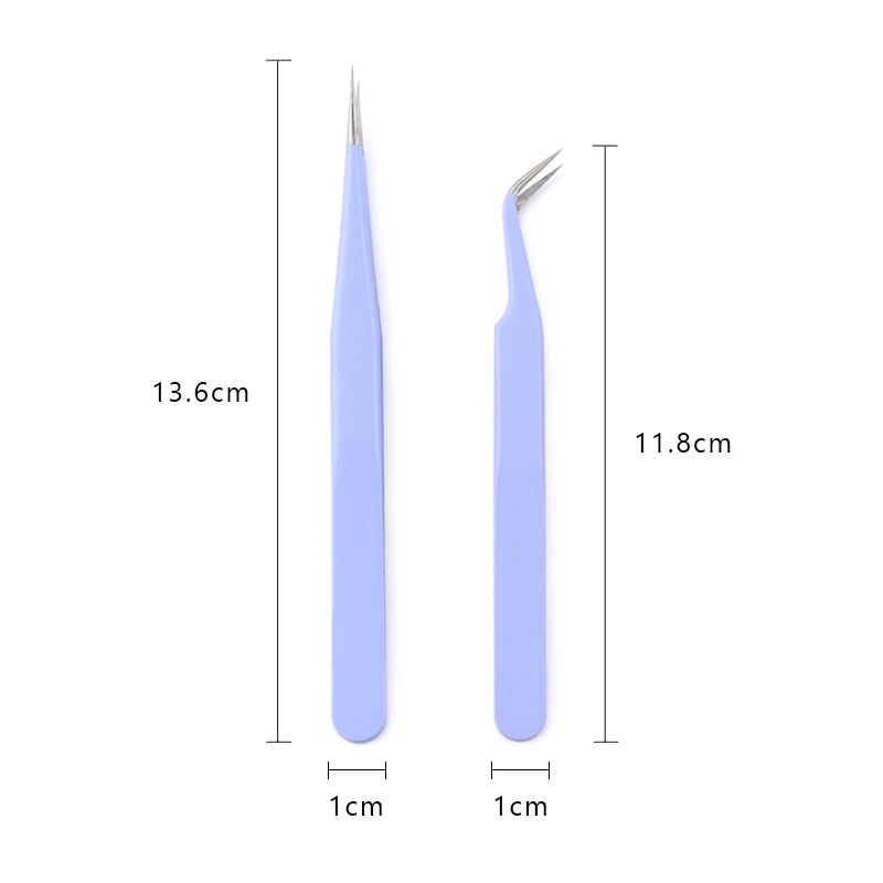 Прямой пинцет 12,3 смИзогнутые пинцеты 11,5 смВес нетто: 15,5 г/шт.Материал: нержавеющая стальЦвет: цвет макарон