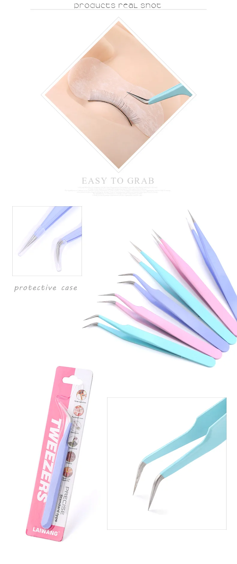 Набор цветных антистатических пинцетов для наращивания ресниц, бров...