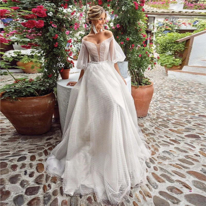 Пляжное свадебное платье-трапеция Verngo 2020, элегантное женское свадебное платье с рукавом до локтя, платье для невесты