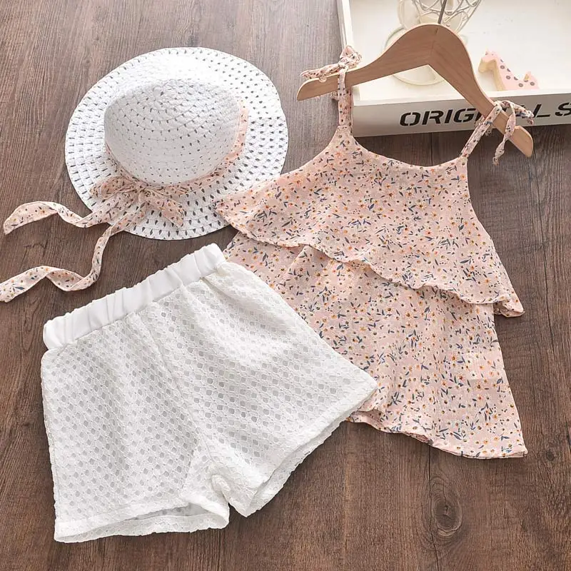 Модная одежда для девочек 2021, летнее милое кружевное платье на бретельках для маленьких детей, костюм для маленькой девочки, розовое платье в форме волны, костюм, одежда