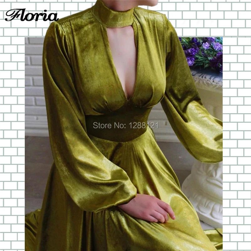 Зеленые бархатные шикарные вечерние платья, вечернее платье, Robe De Soiree 2020, кутюр, исламское платье с v-образным вырезом, вечерние платья с высоким разрезом