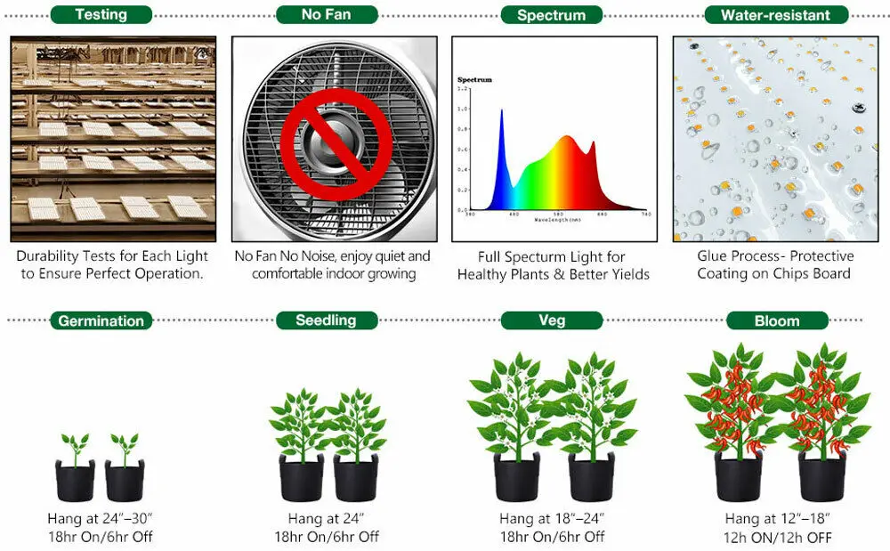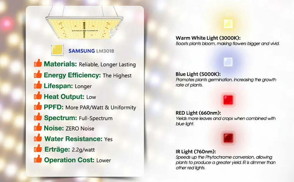 Спектр:660-665nm, 3000 K, 5000 K