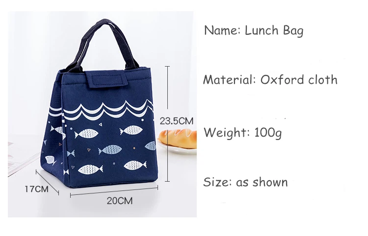100% новый товар высокого качества. Количество: 1 Материал: ткань Оксфорд Размер: 20*17*23,5 см Цвет: как на картинке Посылка: 1 сумка для обеда