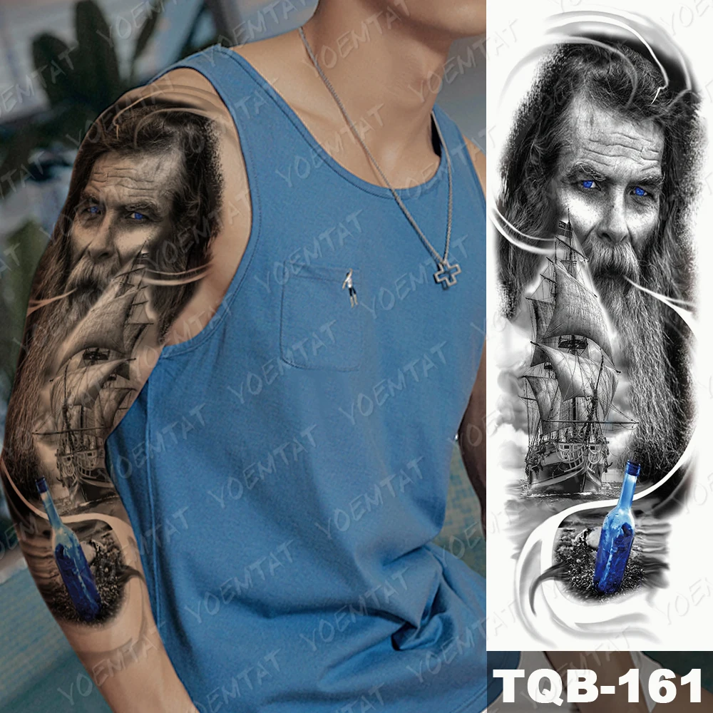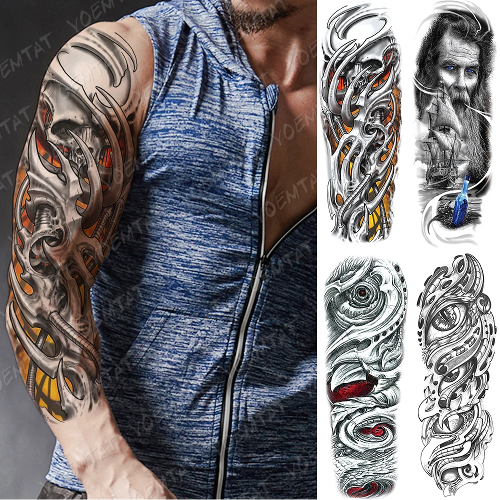 Большая рука рукав тату машинное оборудование снаряжение череп Водонепроницаемая временная татуировка наклейка парусное тело искусство Полный поддельный тату для женщин и мужчин