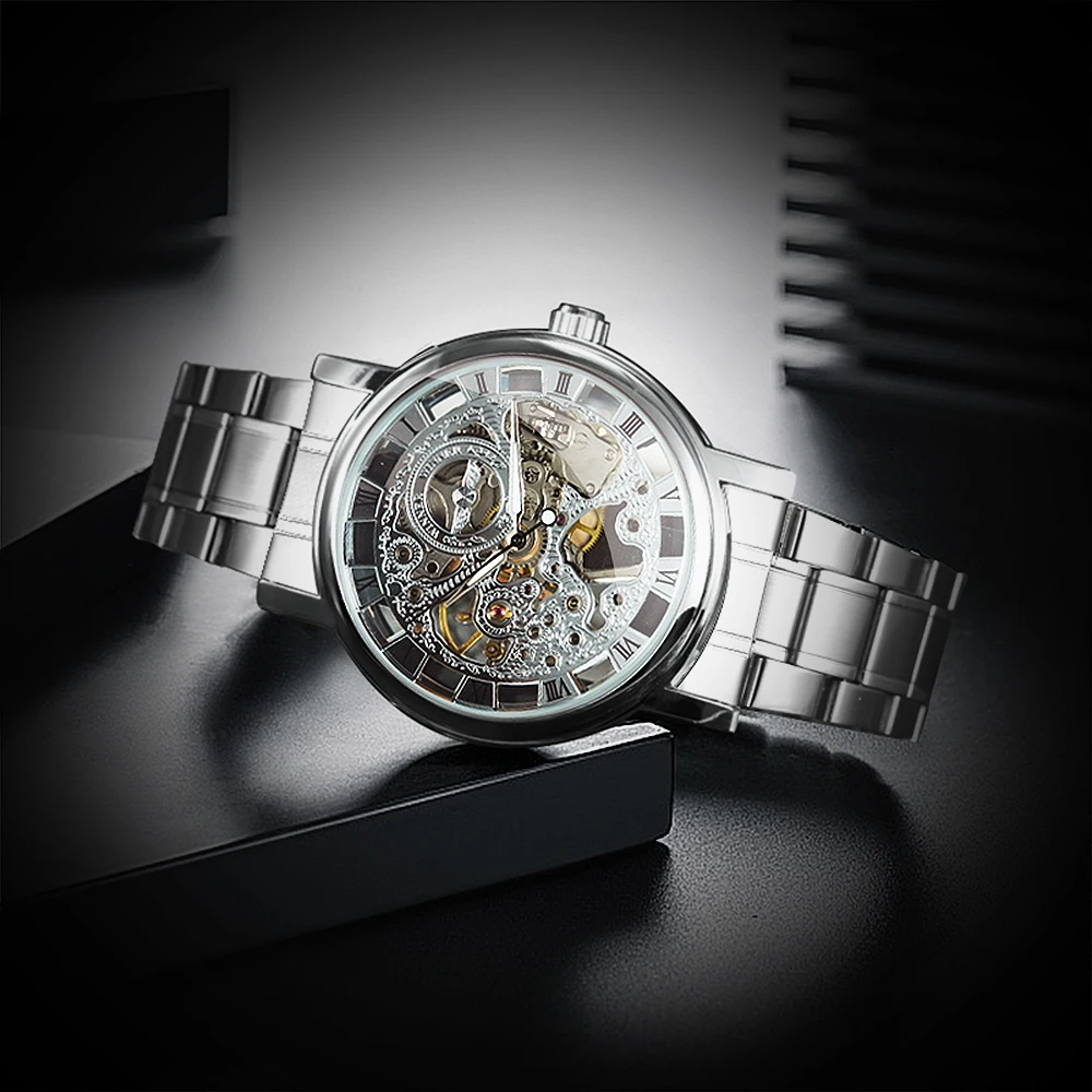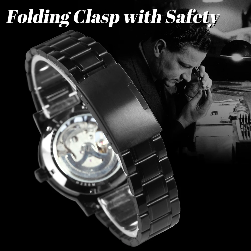 Часы наручные WINNER Мужские автоматические механические, брендовые Роскошные модные часы-скелетоны в стиле милитари с ремешком из нержавеющей стали