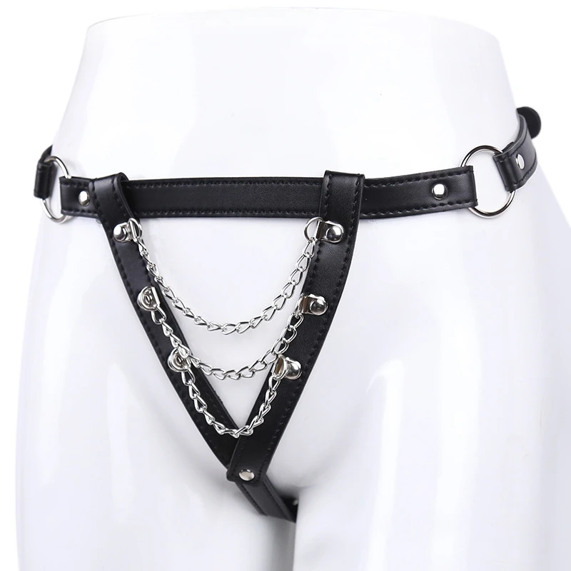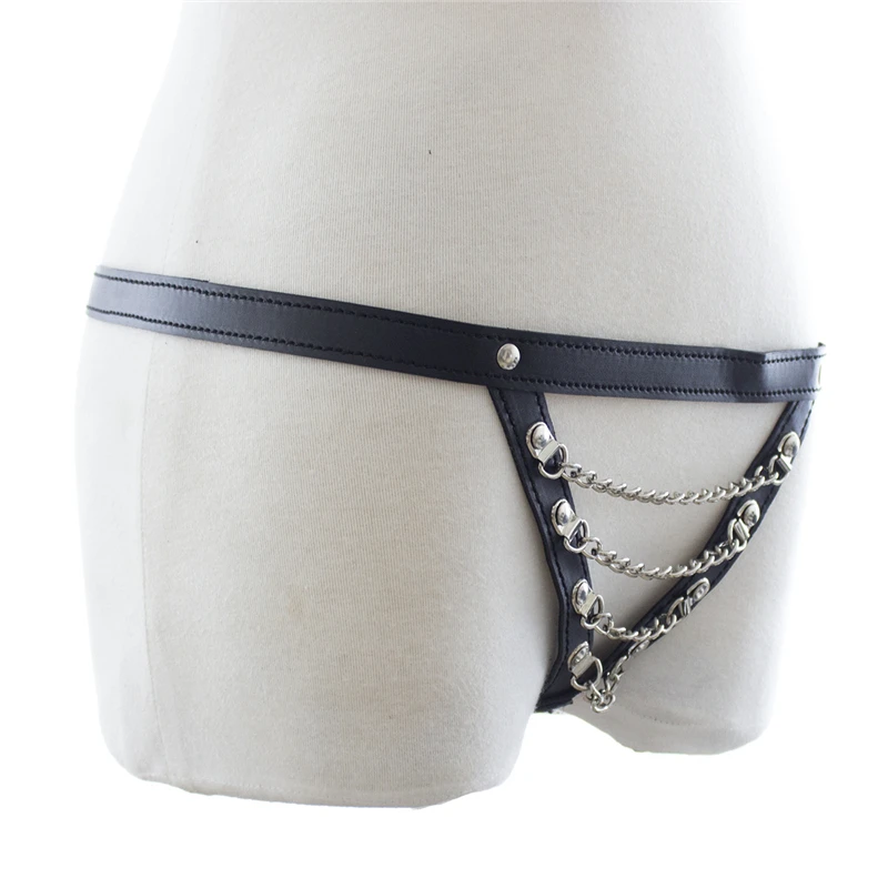 Сексуальное женское нижнее белье, Эротические трусики для секса, кожа, фетиш, регулируемая открытая промежность, целомудрие, трусики с цепочкой, БДСМ, сексуальные костюмы