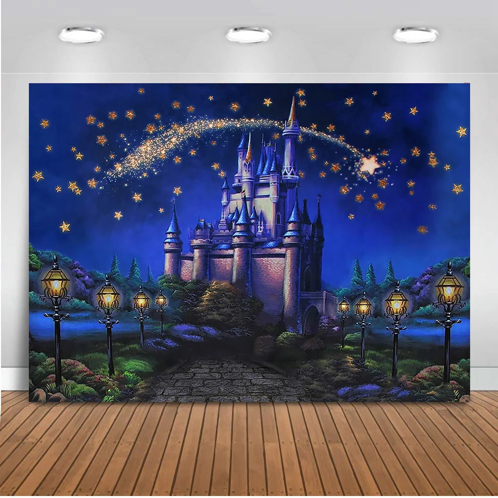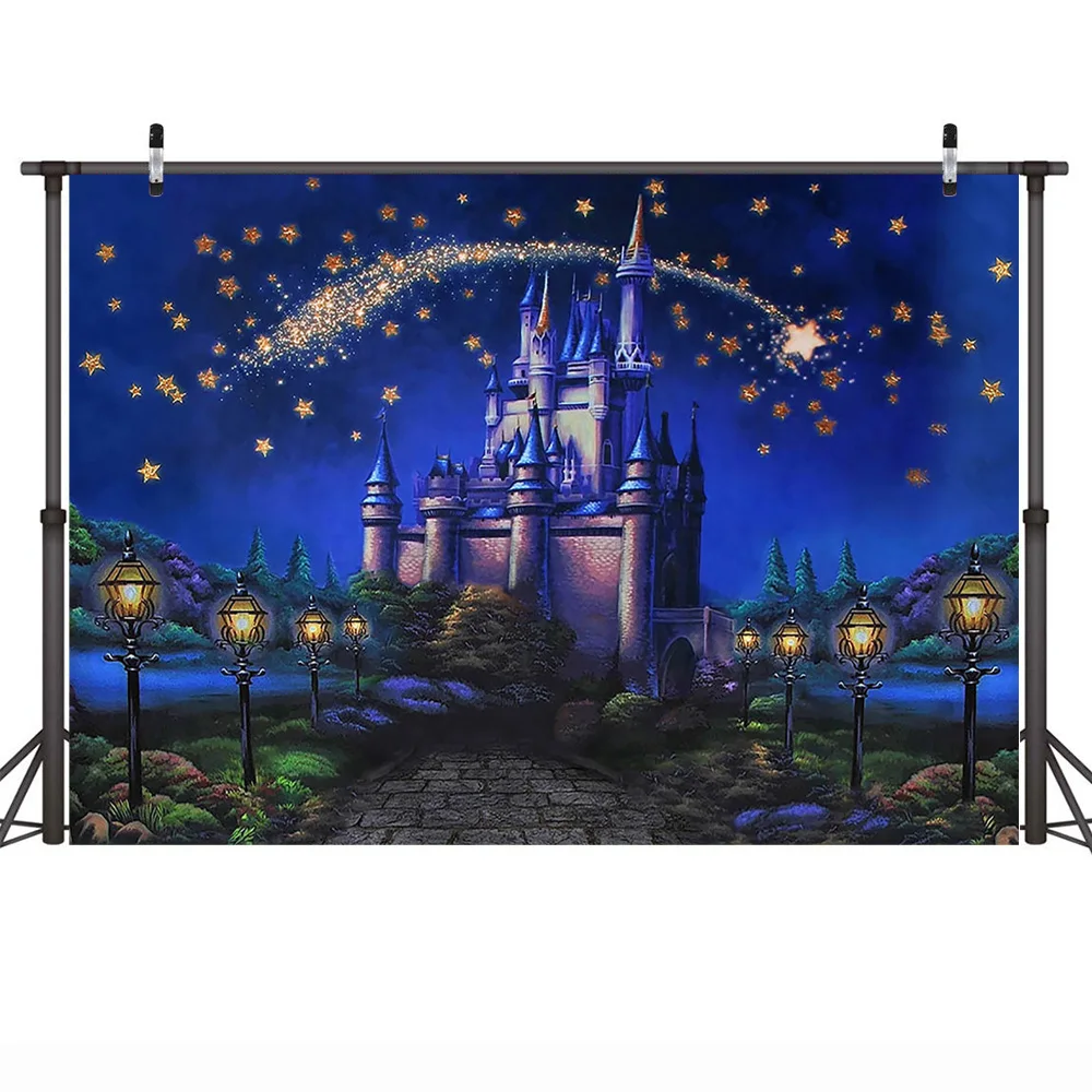 Фон для студийной фотосъемки с изображением замка, сказочной принцессы, голубого звездного неба
