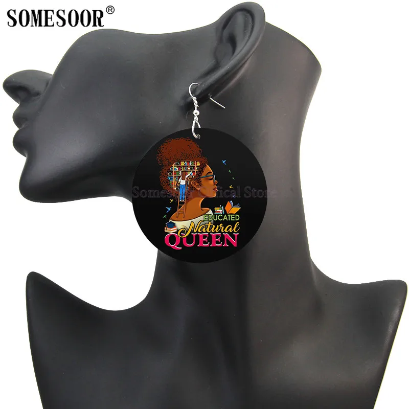 Серьги-подвески женские SOMESOOR, деревянные, с изображением природной королевы, афро
