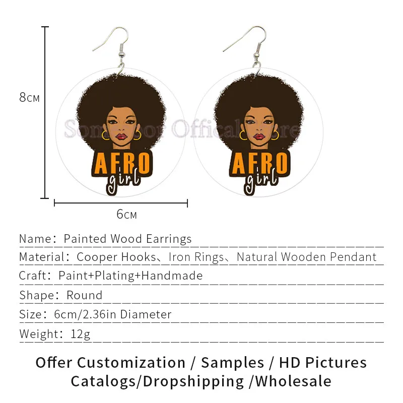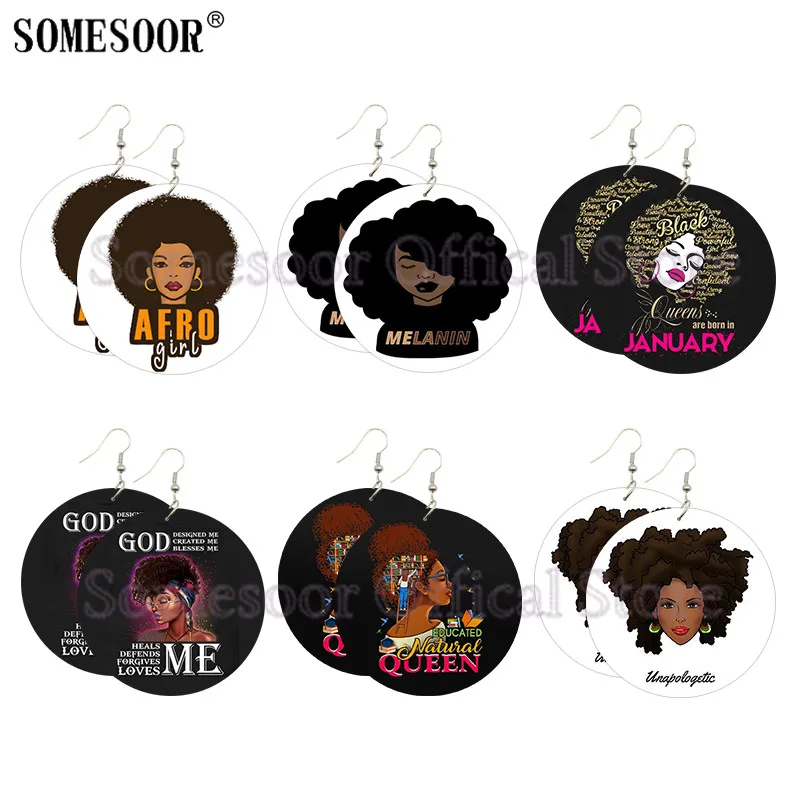 Деревянные серьги-подвески SOMESOOR, с изображением меланина, женск...