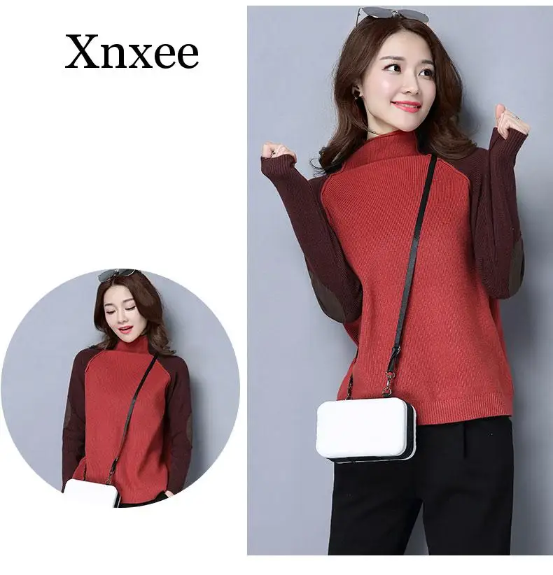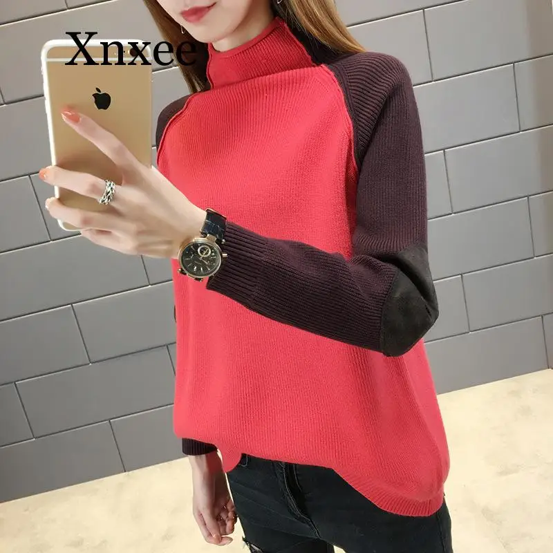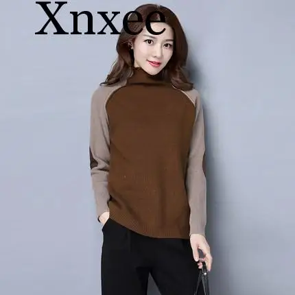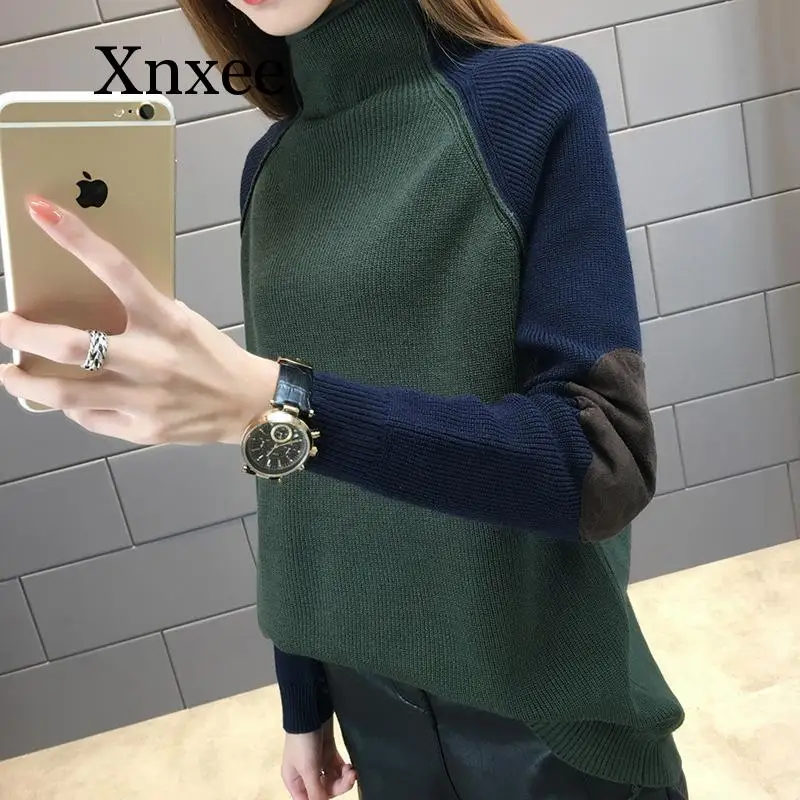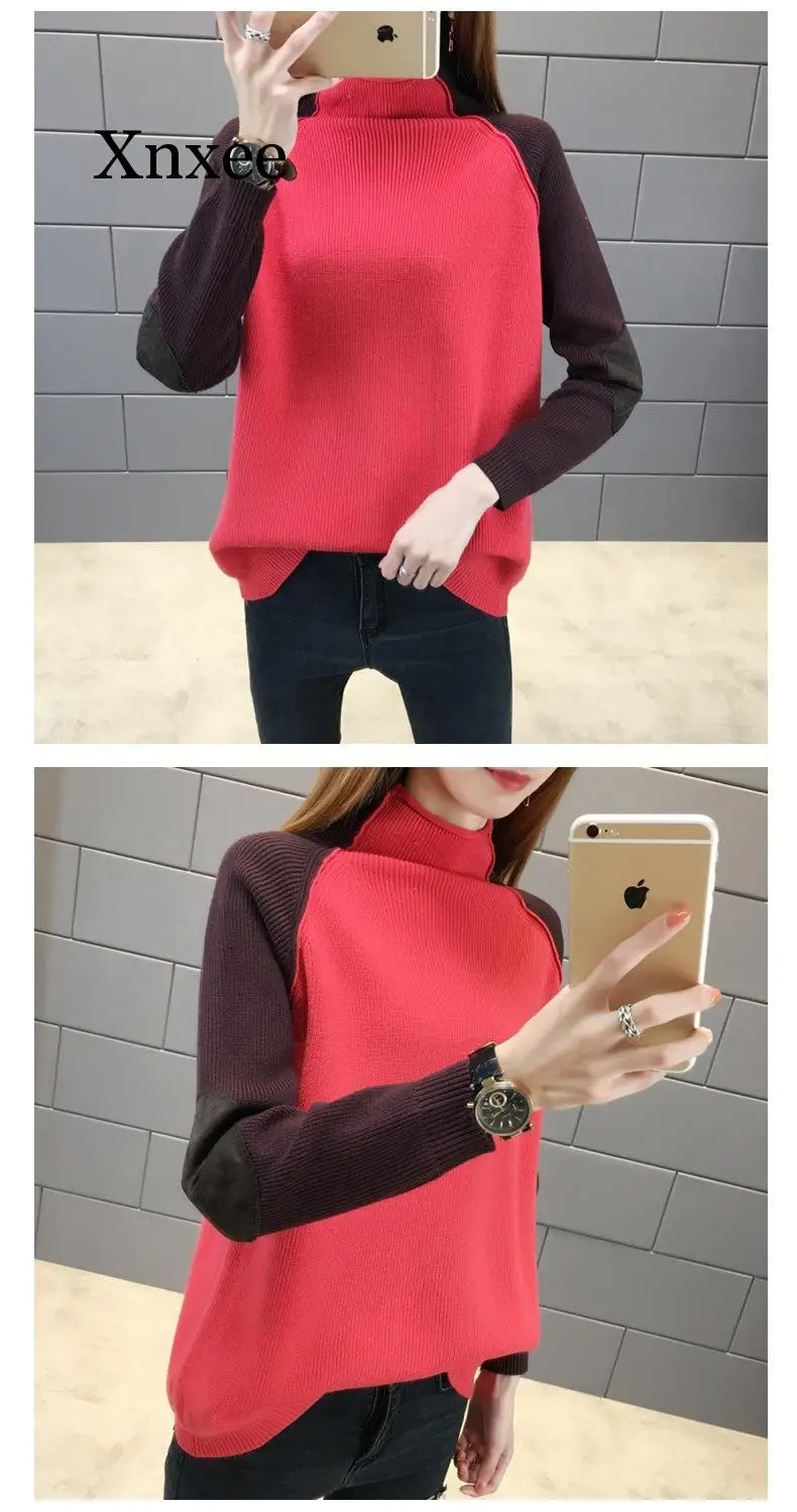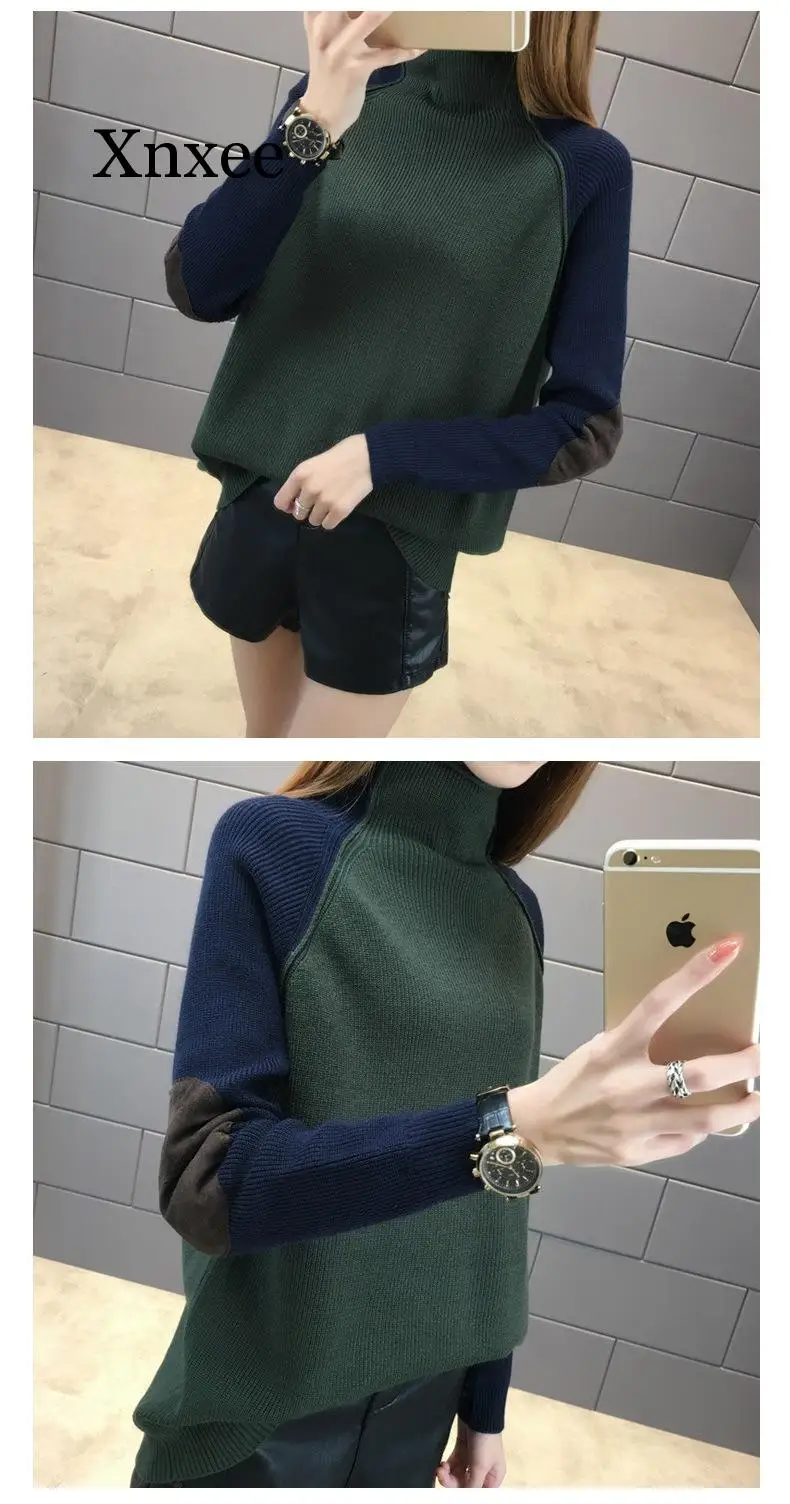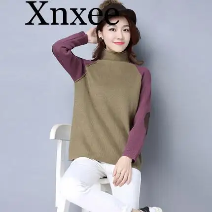 Женский шерстяной свитер, разноцветная длинная водолазка в Корейском стиле, Осень-зима