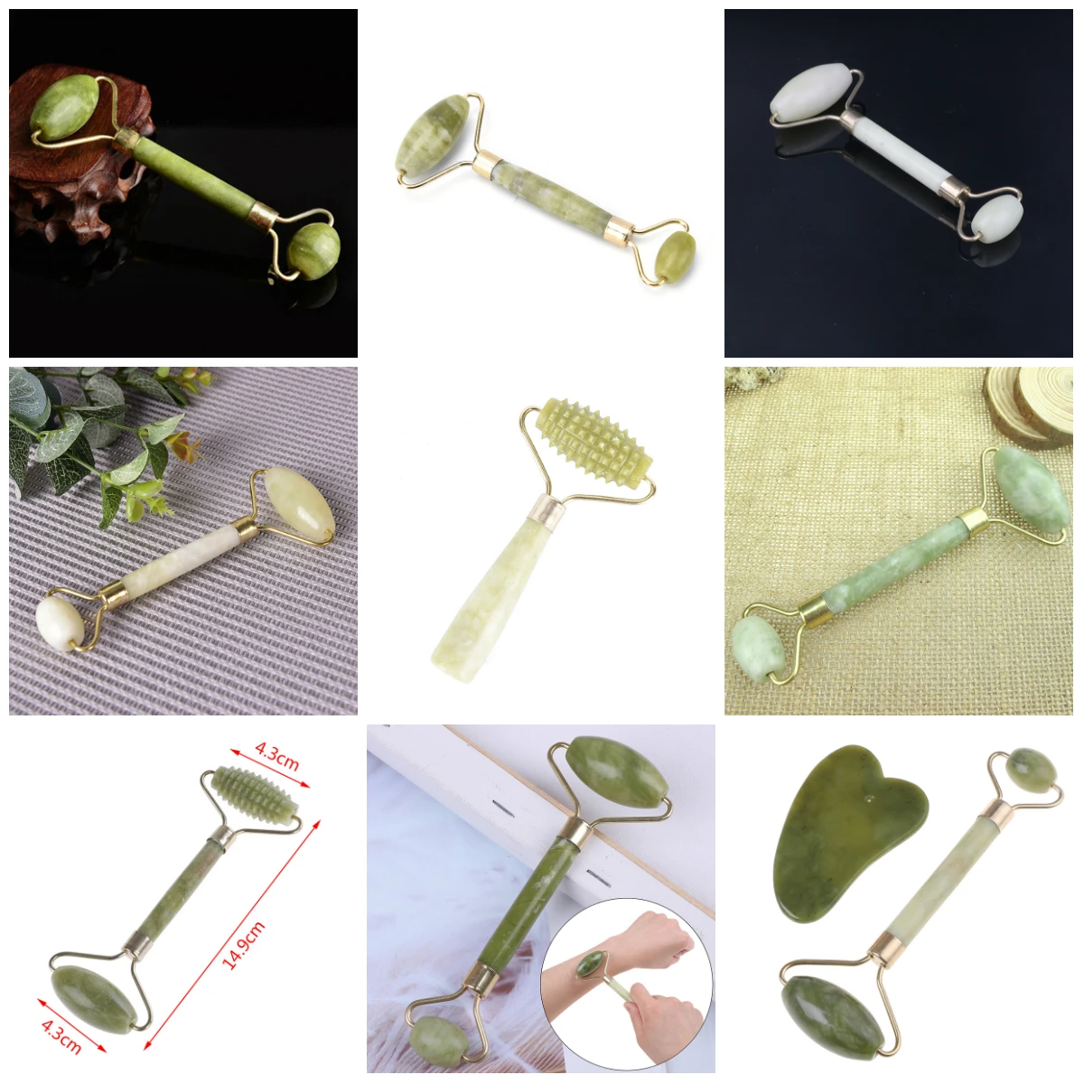 2 в 1 зеленый ролик и Gua Sha Инструменты Набор натурального нефрита скребок массажер с камнями для лица шеи спины и Jawline