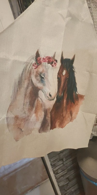 Хороший фартух. Рисунок чёткий как на фото. Хотелось бы ткань более натуральную хлопковую, но когда заказывала читала, что ткань плотная поэтому к этому была готова. Покупкой довольна. Продавца рекомендую.
